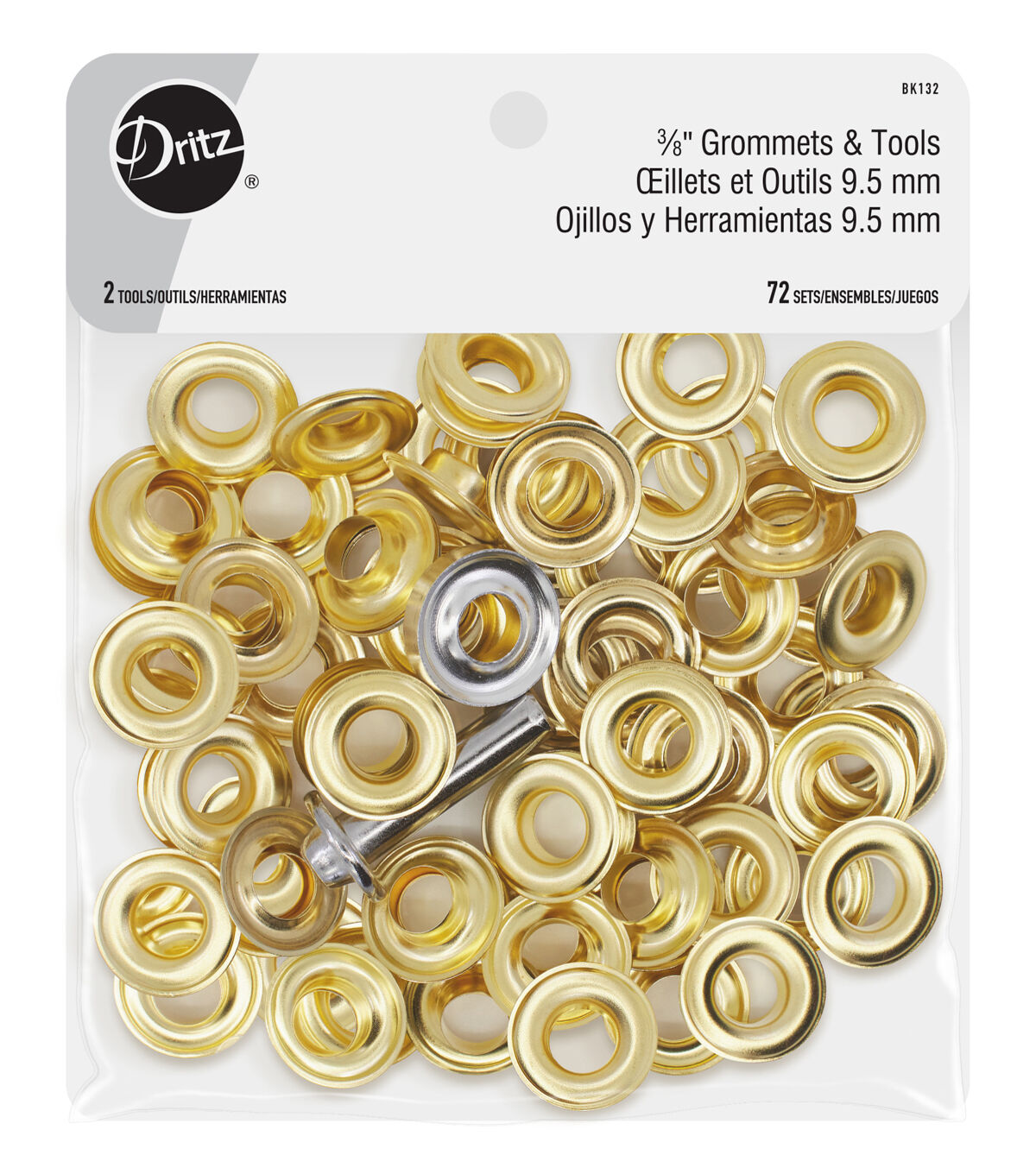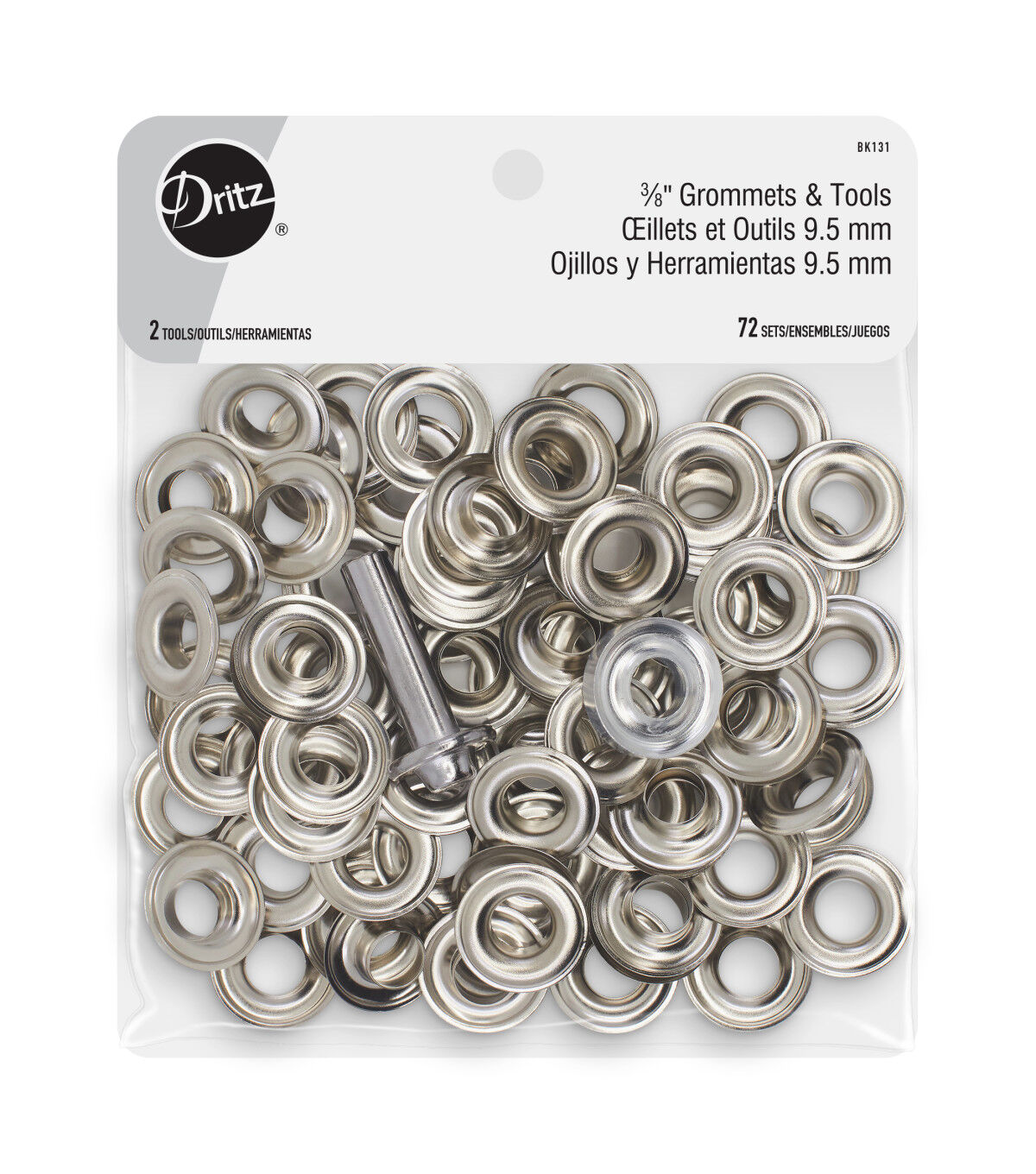 Use the Dritz Grommets & Tools Set for a range of home decor and sewing projects. This pack includes 72 sets of grommets with a nickel finish and hand tools for application. They are perfect for attaching to tents, shower curtains, backpacks and duffel bags and as a hole reinforcement and to prevent fabrics from fraying.