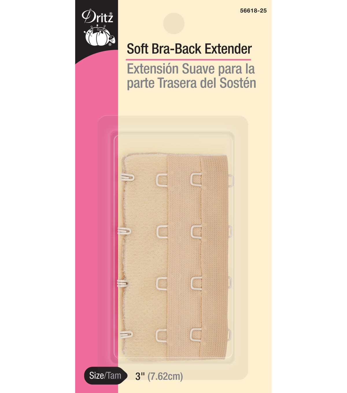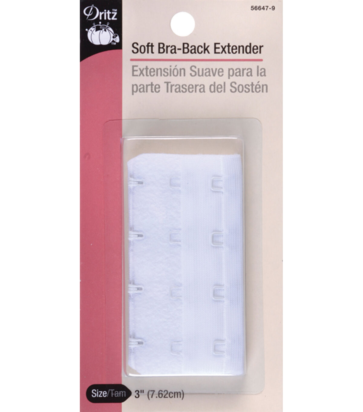 Use the Dritz 4 Hook Soft Bra-Back Extender 3'' to add extra inches to the underband of your bra. The soft texture of this bra extender provides comfort and protects your skin from irritation. Simply insert it between your bra hook and eye to add extra length between 1 to 3 inches. This pack includes one 3-inch wide bra extender. Available in different colors, each sold separately.