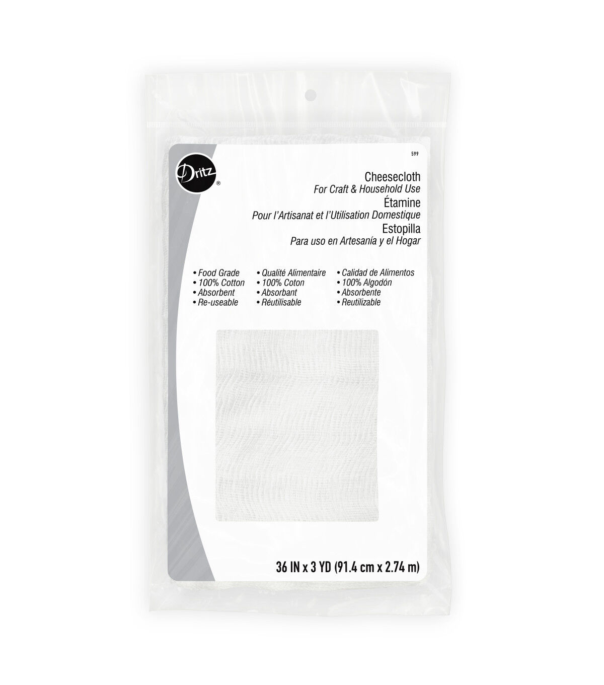 Made of 100% bleached cotton, the absorbent Dritz Cotton Cheese Cloth is a multipurpose cloth commonly used for making scary hanging ghosts for Halloween, crafts, painting and staining, baking and caning, and many more. It is also used in some styles of cheese making, and is also used to wax, polish and refinish furniture and crafts. This cheese cloth is handy, and is a must-have for every home.