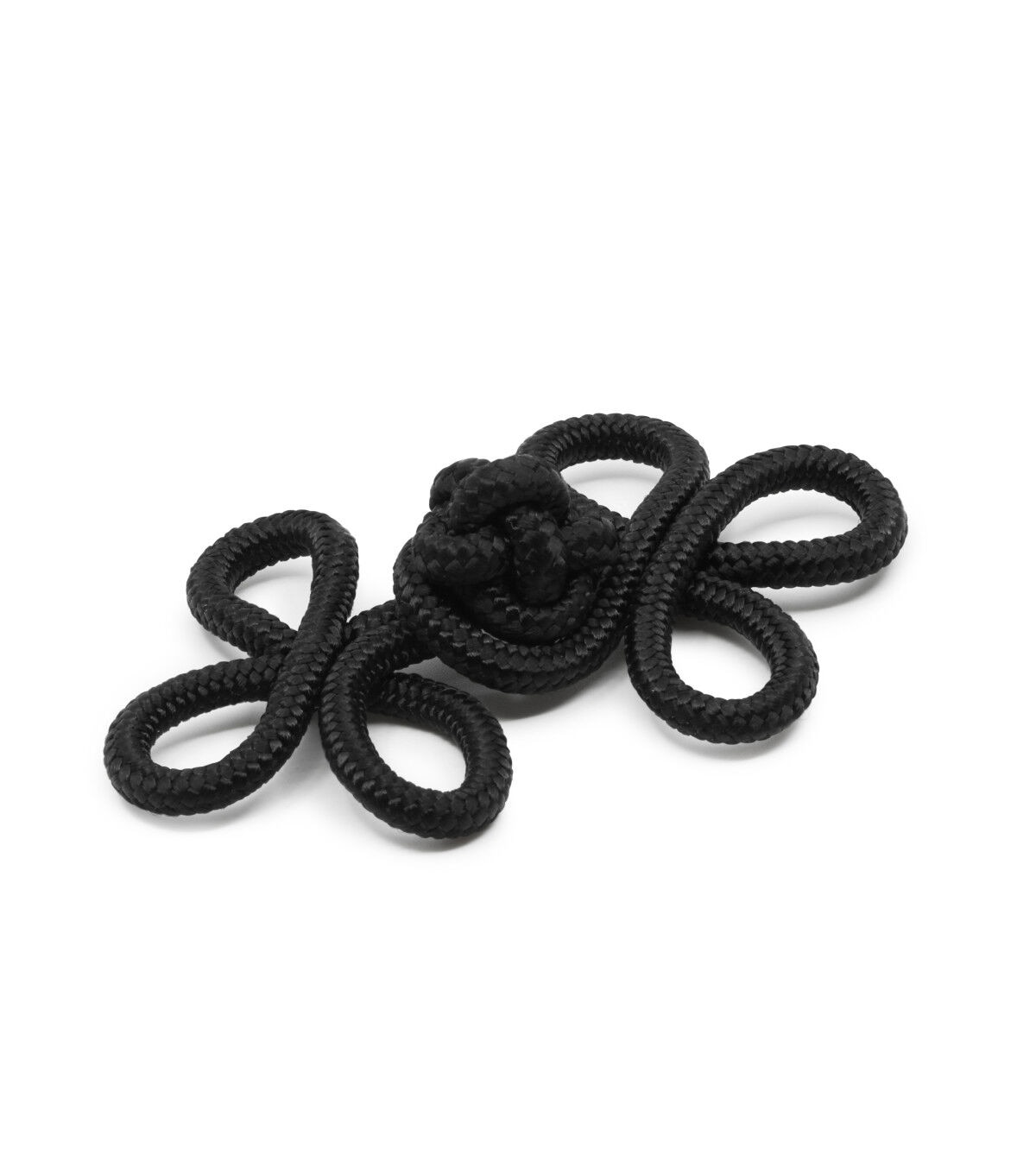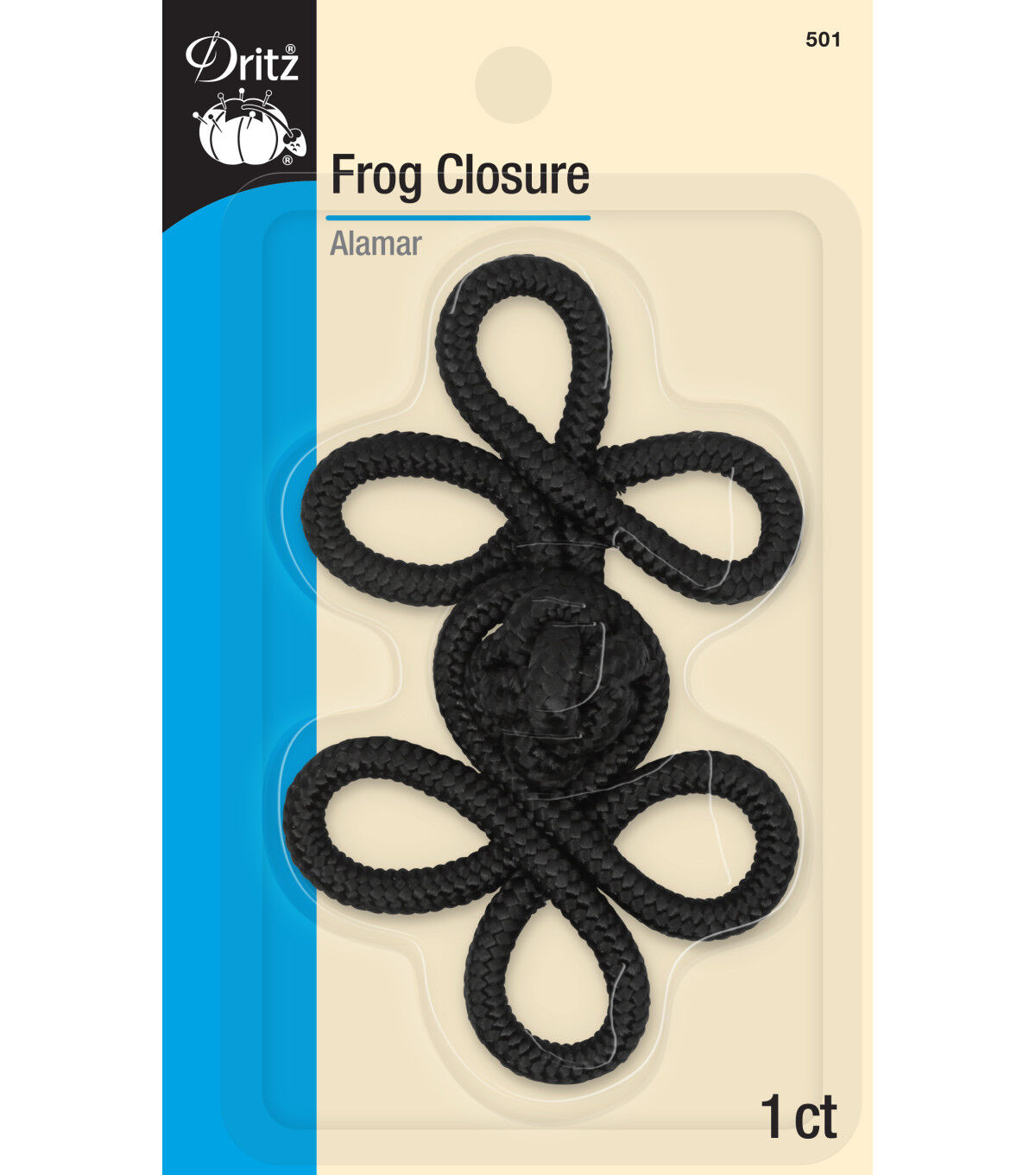 Take your jacket and vest designs up a notch with the Dritz 3 Loop Frog Closure - Black. This pack includes a 4-inch frog closure that flaunts a black shade. It is made of nylon and is machine washable. You can hand-stitch it onto any garment of your choice to give it a decorative upgrade.