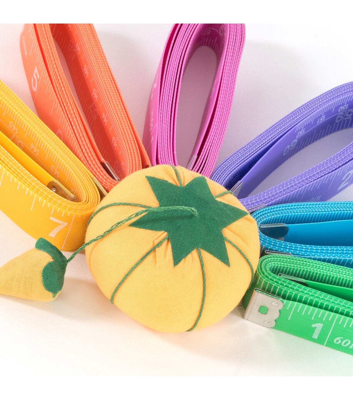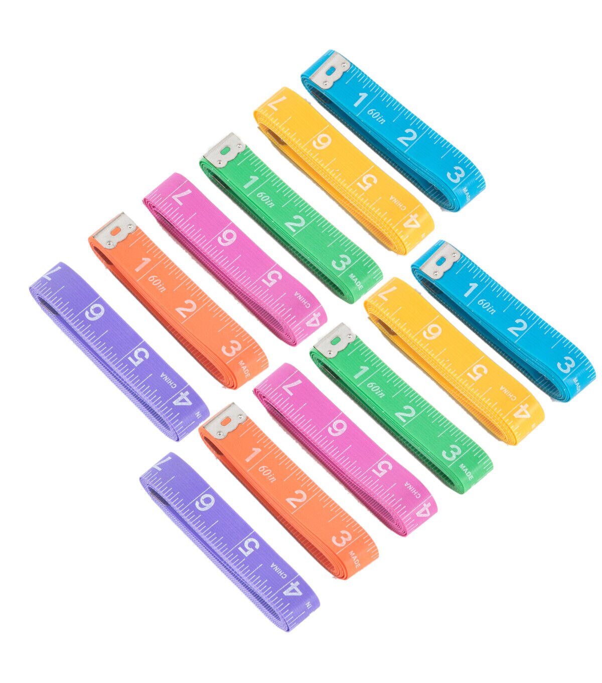 Easily measure fabrics and other materials for sewing and quilting projects using the Dritz Measuring Tapes - Multi. These measuring tapes are made of reinforced fiberglass and come with inches and centimeter markings for convenience. They will be a great addition to the tool kit of a quilter or a seamstress. This pack includes twelve 0.62-inch wide measuring tapes in yellow, orange, pink, purple, green and teal shades, two of each color.