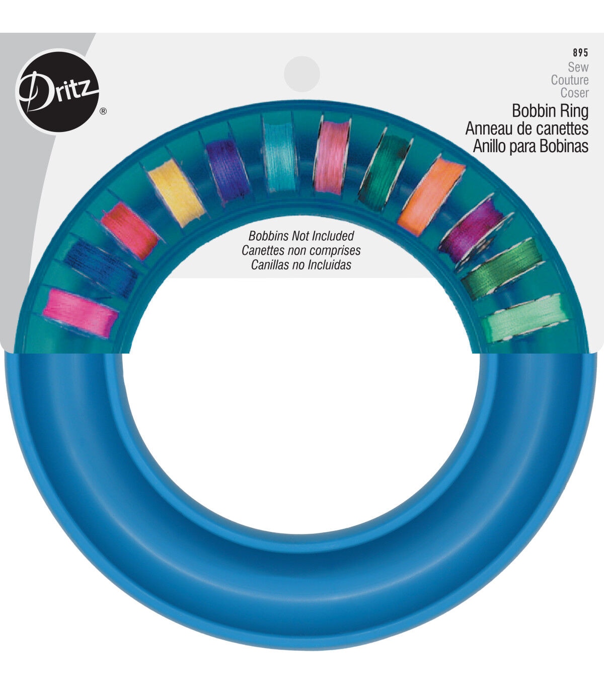 Use the Dritz Bobbin Ring - Teal to hold bobbins and keep your sewing space organized. This flexible bobbin ring securely holds metal and plastic bobbins and is convenient to store next to your sewing machine. You can store over 20 bobbins in it.