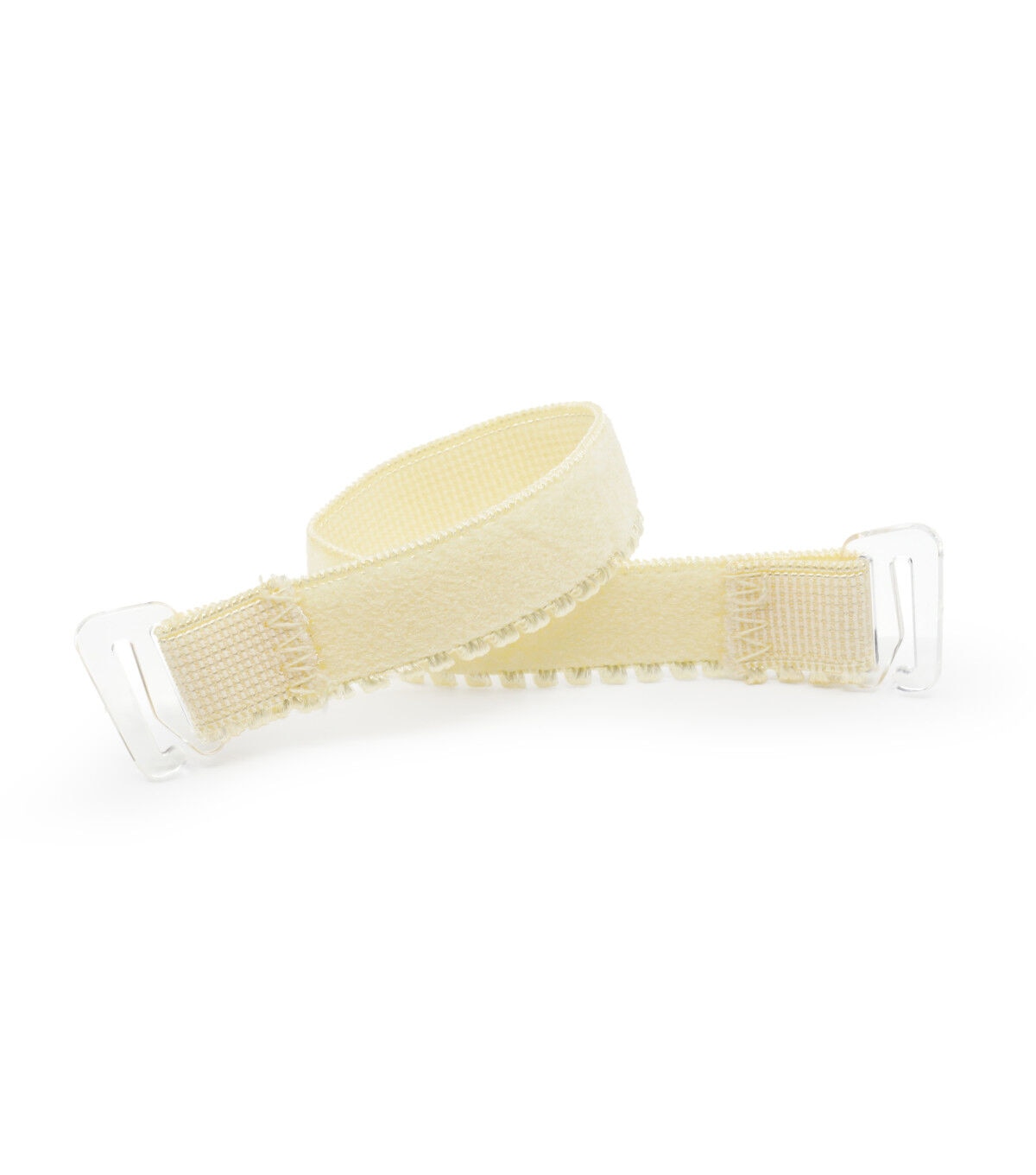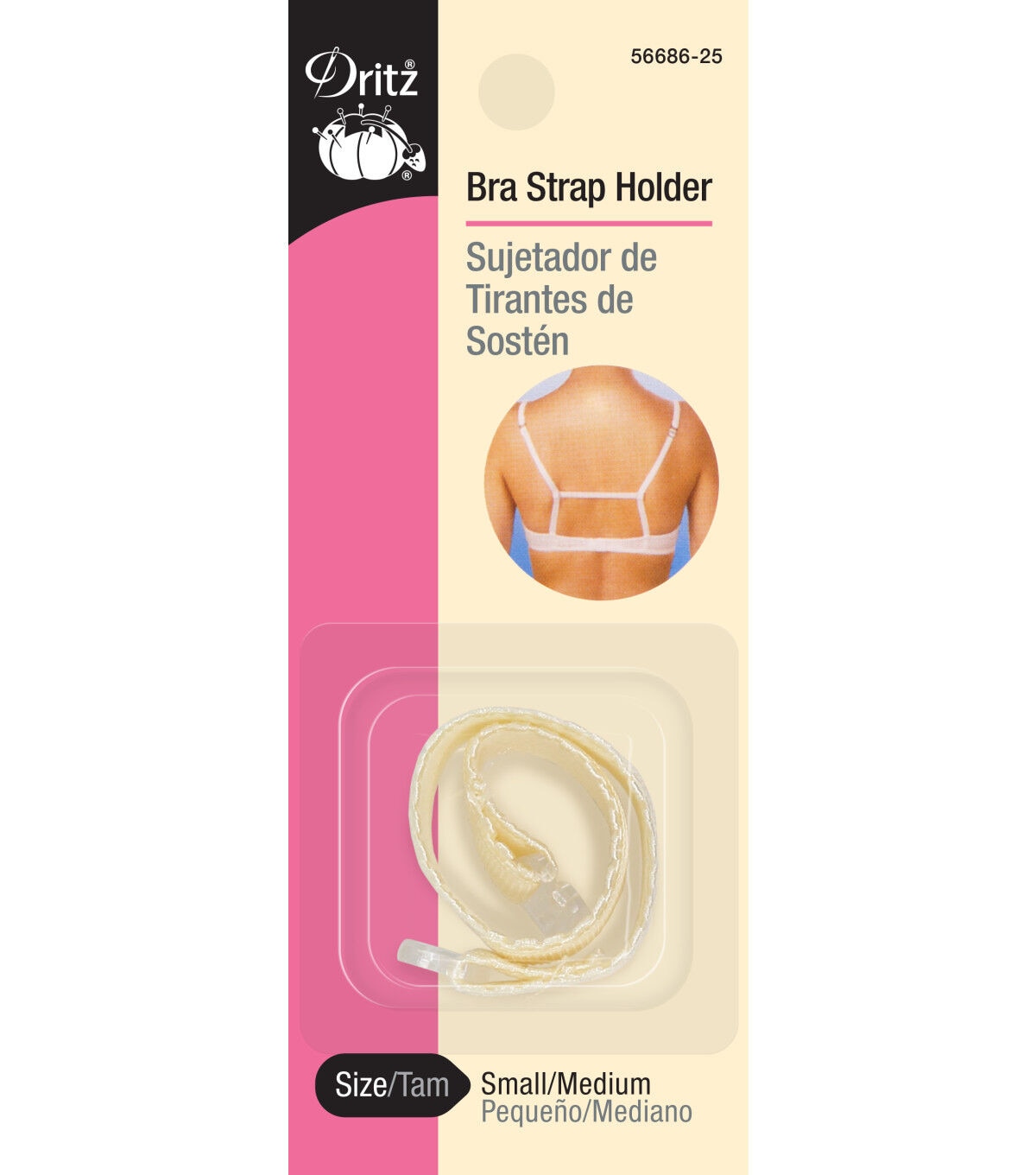 Prevents bra straps from falling off your shoulders with the Dritz Small/Medium Bra Strap Holder - Beige. It sports a beige hue. This strap holder can be place at a desired position on your back. All you have to do is wrap the holder around your strap and slide the strap into hook. Repeat the same procedure for the other side.