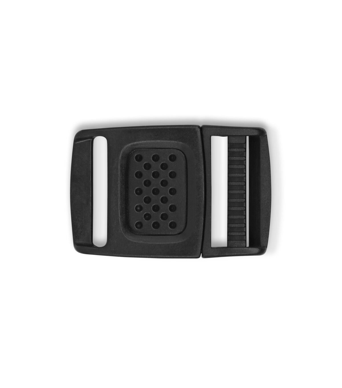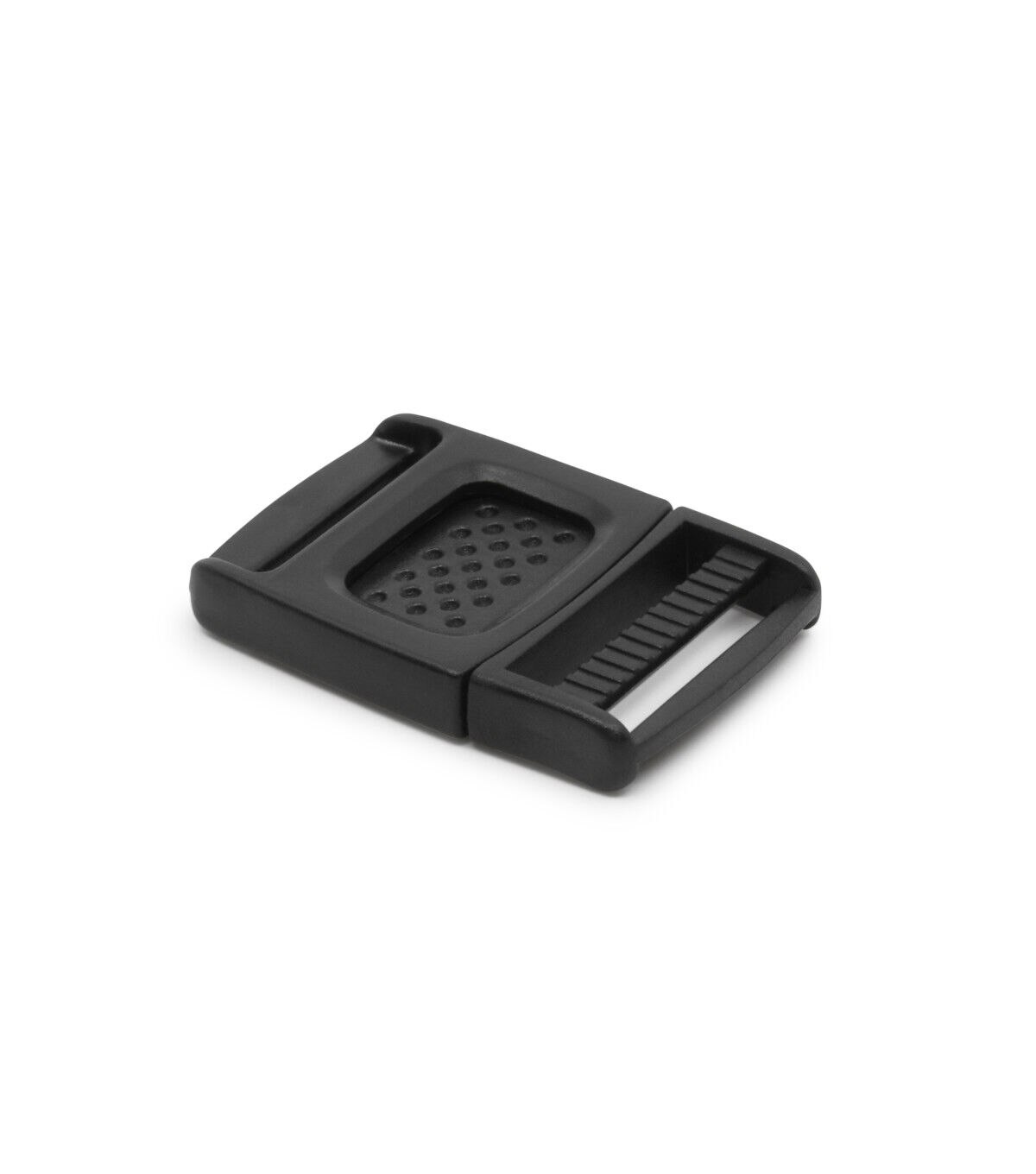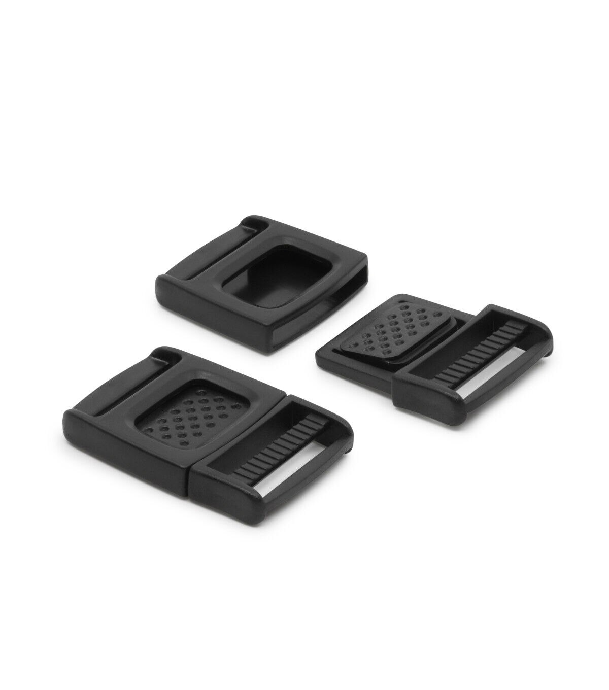 Create straps and closures for your purses, luggage and more using the Dritz Plastic Center Release Buckle - Black. This pack includes a plastic center release buckle and is designed for use with a 1-inch strap. It easily snaps together and creates a strong hold on your tote bag or sporting equipment. You can release it with a mere push of the center release button.