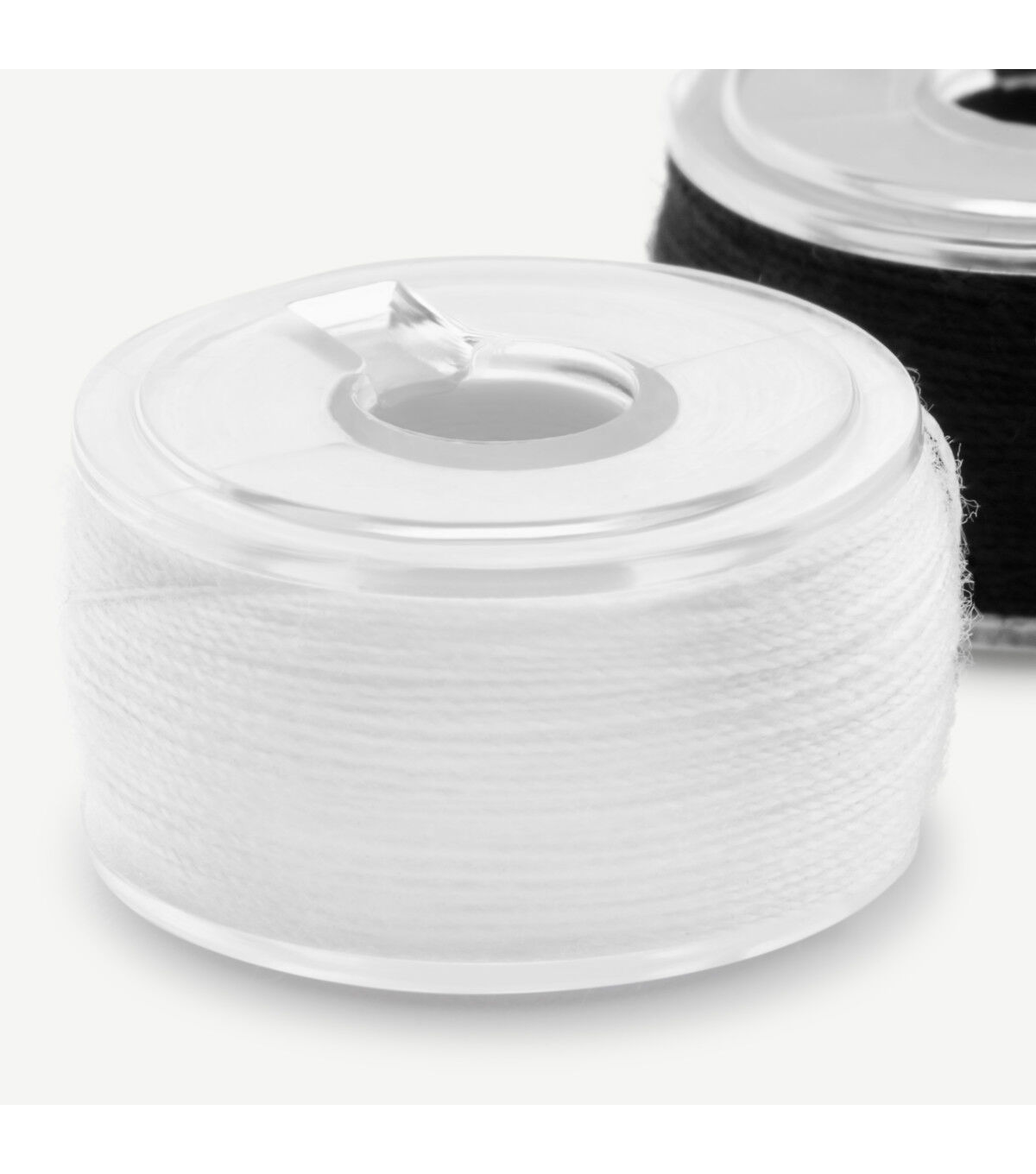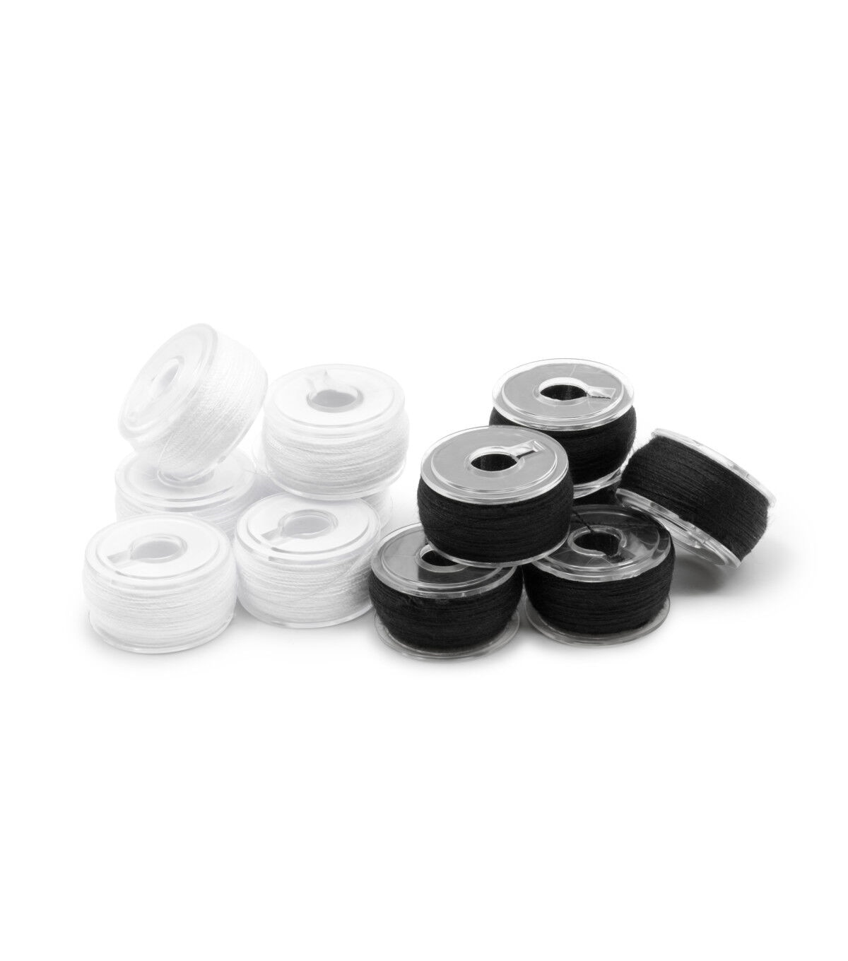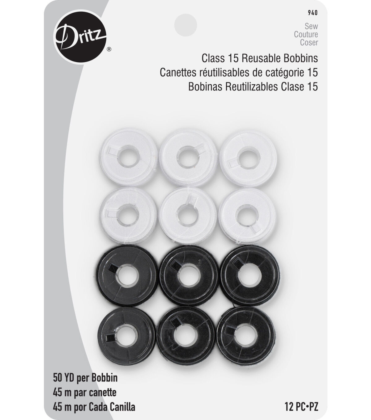 Sewing enthusiasts will love the versatile Dritz Class 15 Reusable Bobbins - Black & White. Suitable for most drop-in bobbin machines, these loaded bobbins aid in quick and convenient sewing. The bobbins are pre-wound with 50 yards of 100% polyester 50-weight thread and can be reloaded once the same has been used. These bobbins can also be used for easy and quick hand sewing as you need to simply thread the needle from the bobbin. Six black and six white plastic bobbins are included in this pack.