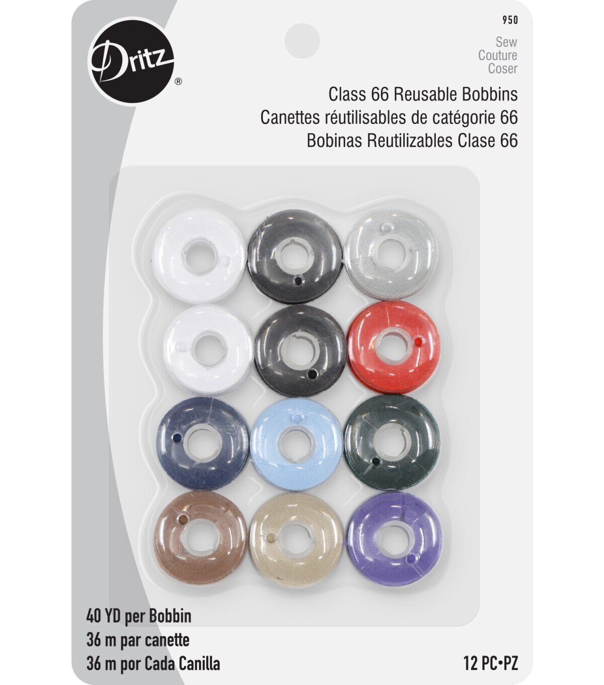 Add the ready-to-use Dritz Plastic Reusable Bobbins - Assorted to your sewing toolkit, for use in your sewing machine. This pack contains pre-filled plastic bobbins with 40 yards of colorfast thread each. You can also use them for hand-sewing projects such as quick repairs. Simply select your color and start sewing. Once they are empty, you can refill them again with your favorite color.