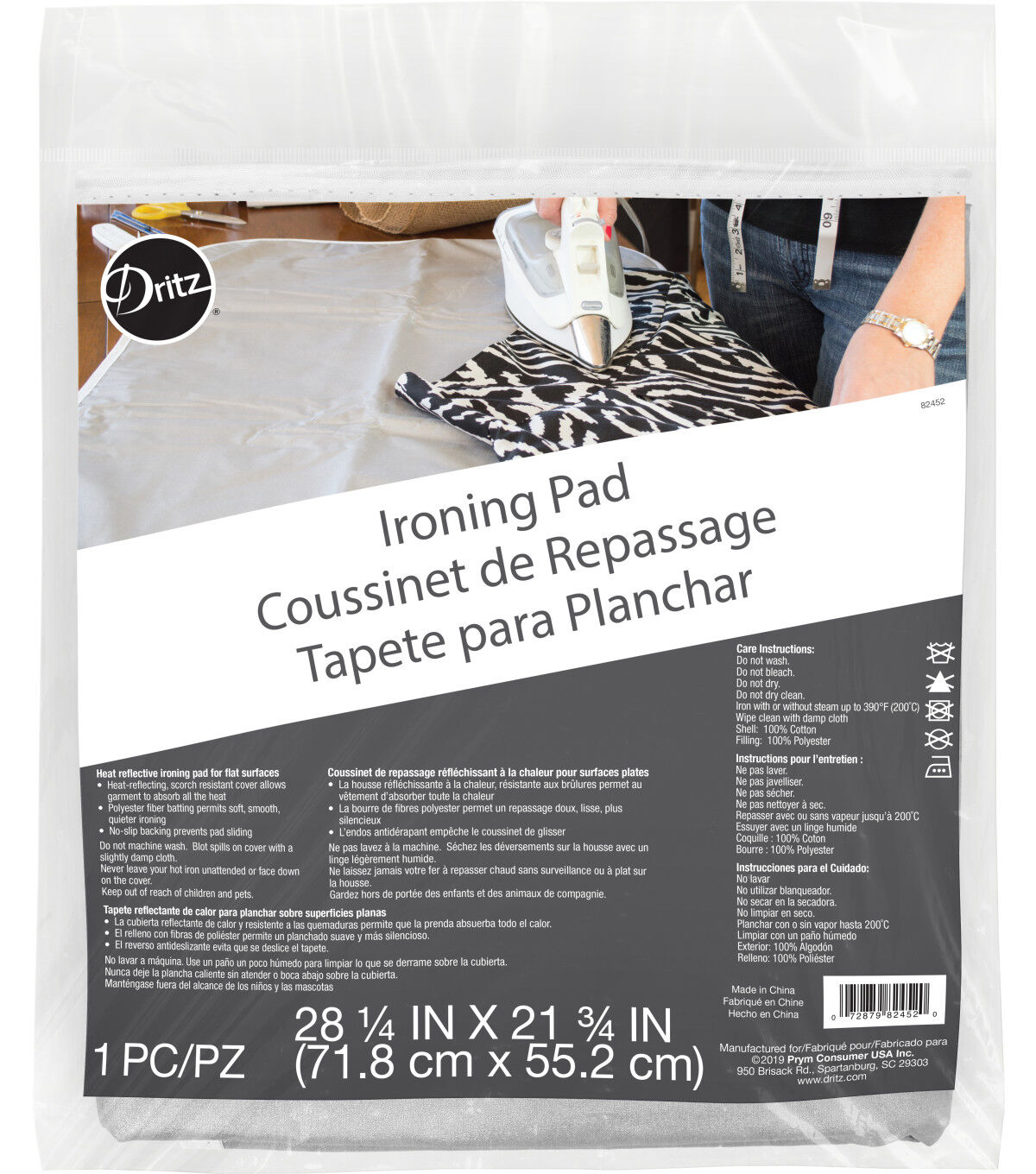 The Dritz Clothing Care Heat-reflective Ironing Pad is a great choice for your ironing requirements. This pack contains one heat-reflective ironing pad for flat surfaces. It is designed with a heavy-duty nylon fabric that protects surfaces while pressing and permits a soft, smooth and quiet ironing experience. A scorch-resistant cover allows your garments to absorb all the heat while a substantial no-slip backing prevents frequent sliding. You can fold this ironing pad easily for storage and travel.