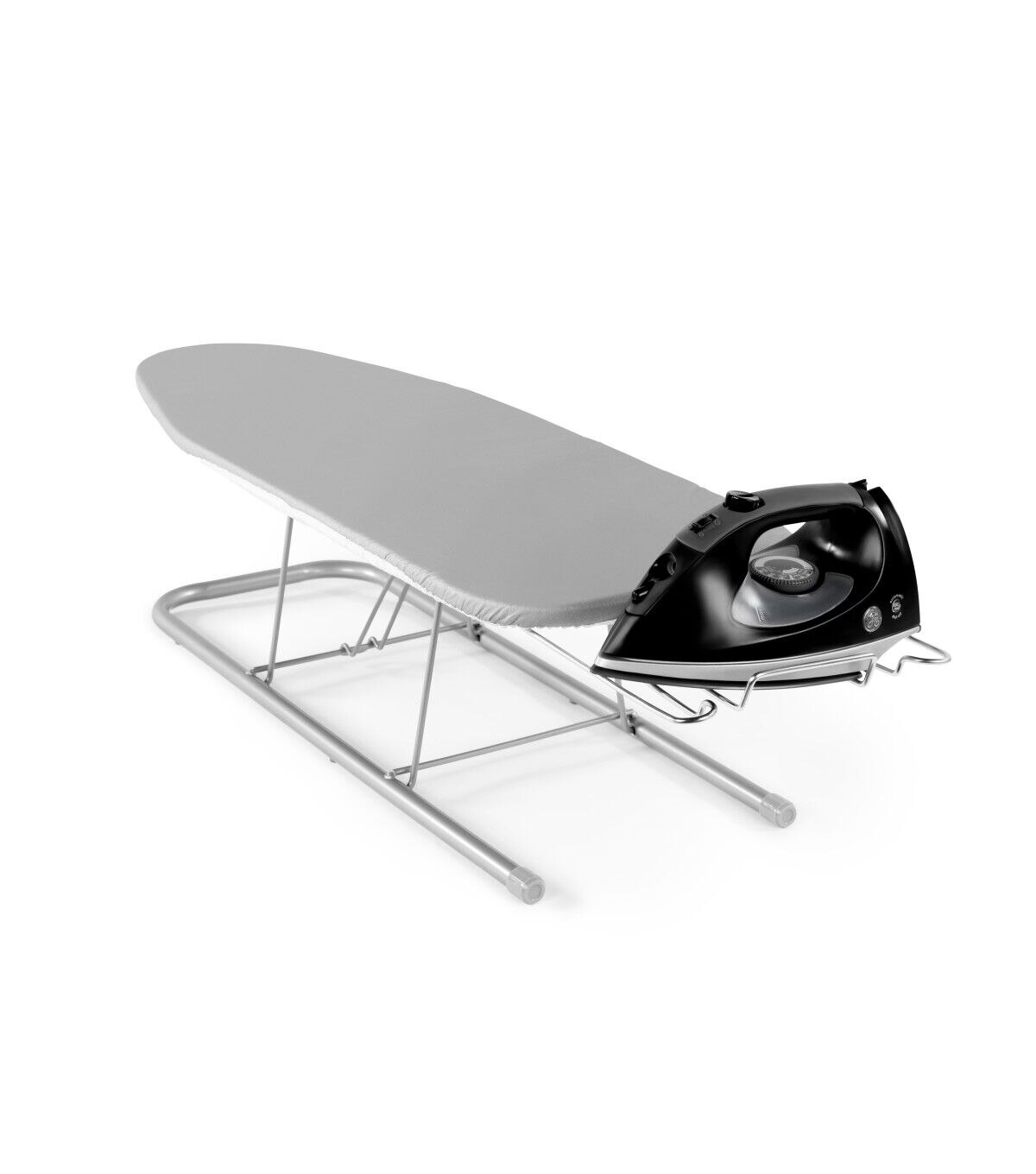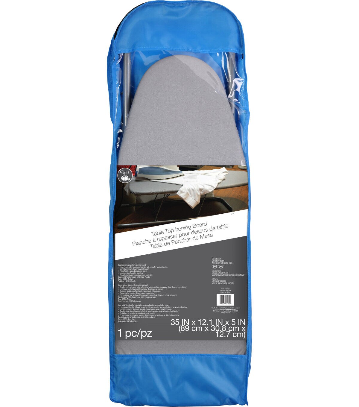 The Dritz Collapsible Tabletop Ironing Board is convenient to use and can be carried on the go. It is designed with a heavy-duty, ultra-plush pad that permits soft, smooth, quieter ironing. This ironing board comes with a mesh top that lets steam pass through. You can raise the board from the base so the hinges are upright, lock the stand in place and proceed with ironing.