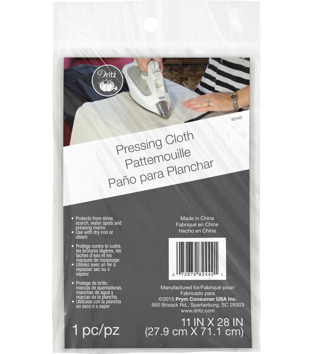 Choose the Dritz Cotton Pressing Cloth to meet all your ironing requirements. This 11 x 28-inch pressing cloth is designed for use on iron boards and other protective work surfaces. It protects garments from shine, scorch, water spots and pressing marks. Set your iron to a suitable temperature, place this cloth over your garment and press using an up-and-down motion. You can reposition this pressing cloth as needed and dampen it with a water mist spray or sponge for additional moisture.