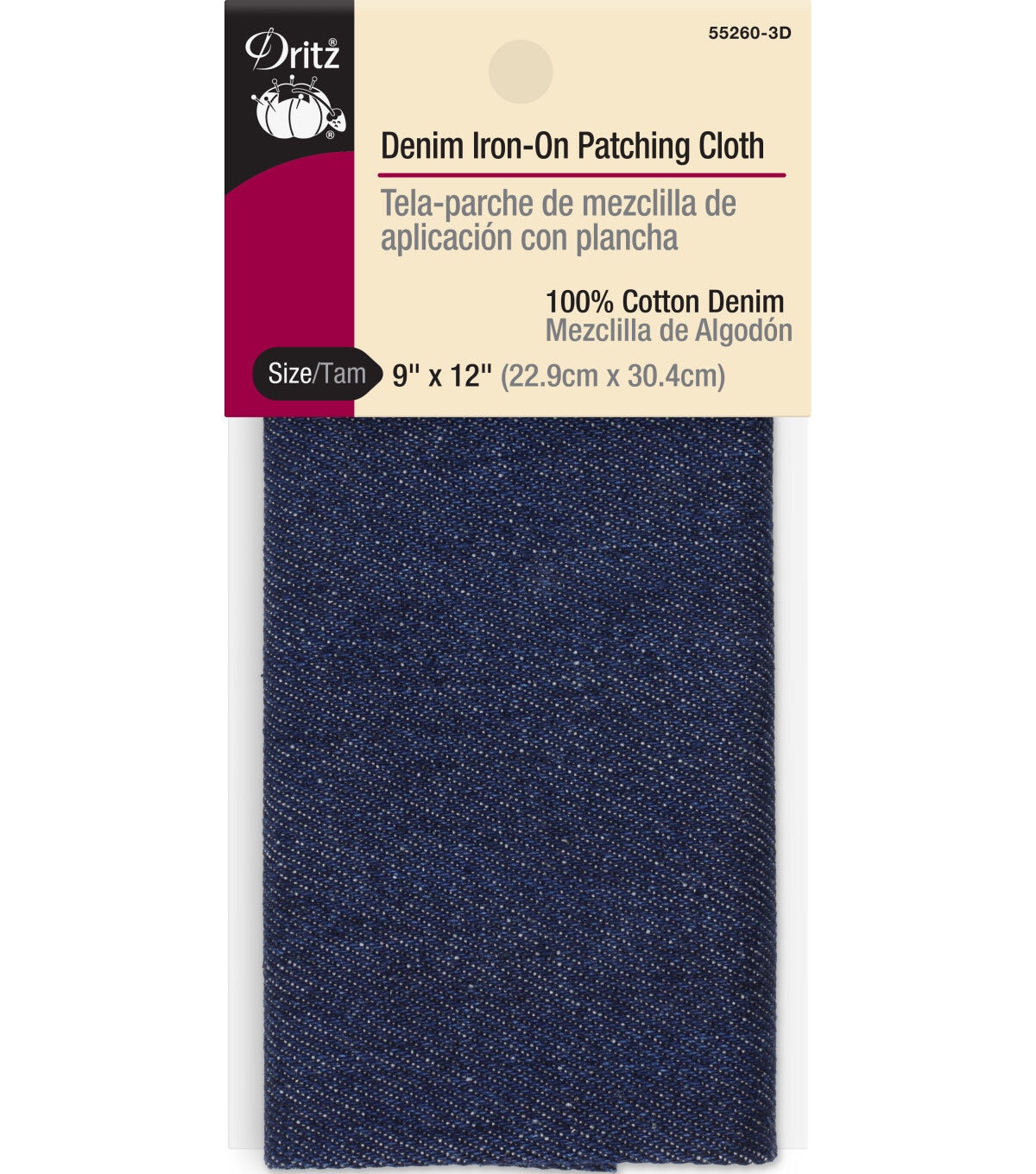Spruce up worn fabrics with the Dritz Denim Iron-on Patching Cloth - Dark Blue. This beautiful piece of denim patch cloth can be ironed on pre-heated garments for a chic and casual look. This patching cloth will come in handy when you have to cover tears or holes in garments. You can also cut it into smaller pieces of varying sizes and use them as unique appliques in your sewing projects. A piece of cotton denim fabric that measures 9 x 12 inches is included in this pack.