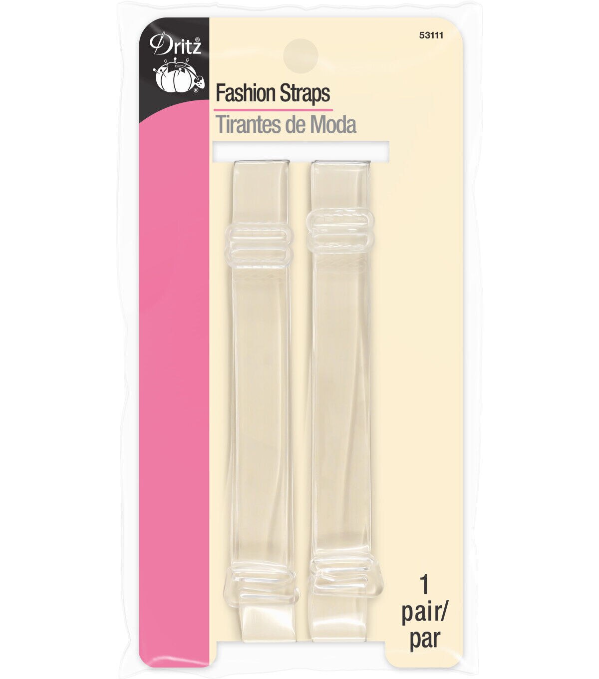 Wear off-shoulder and strapless clothes confidently using the Dritz Detachable & Adjustable Fashion Straps - Clear. This pack includes a pair of fashion straps that are adjustable from 10.5 inches to 19.5 inches. They are made of polyurethane and latex free. You can use them with any bra that has detachable straps.