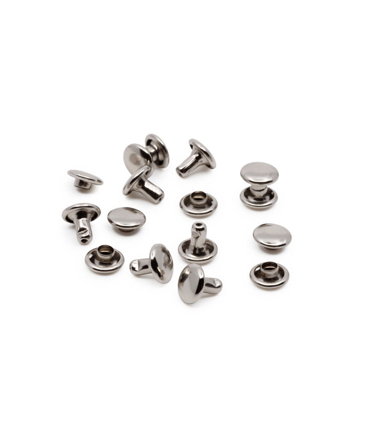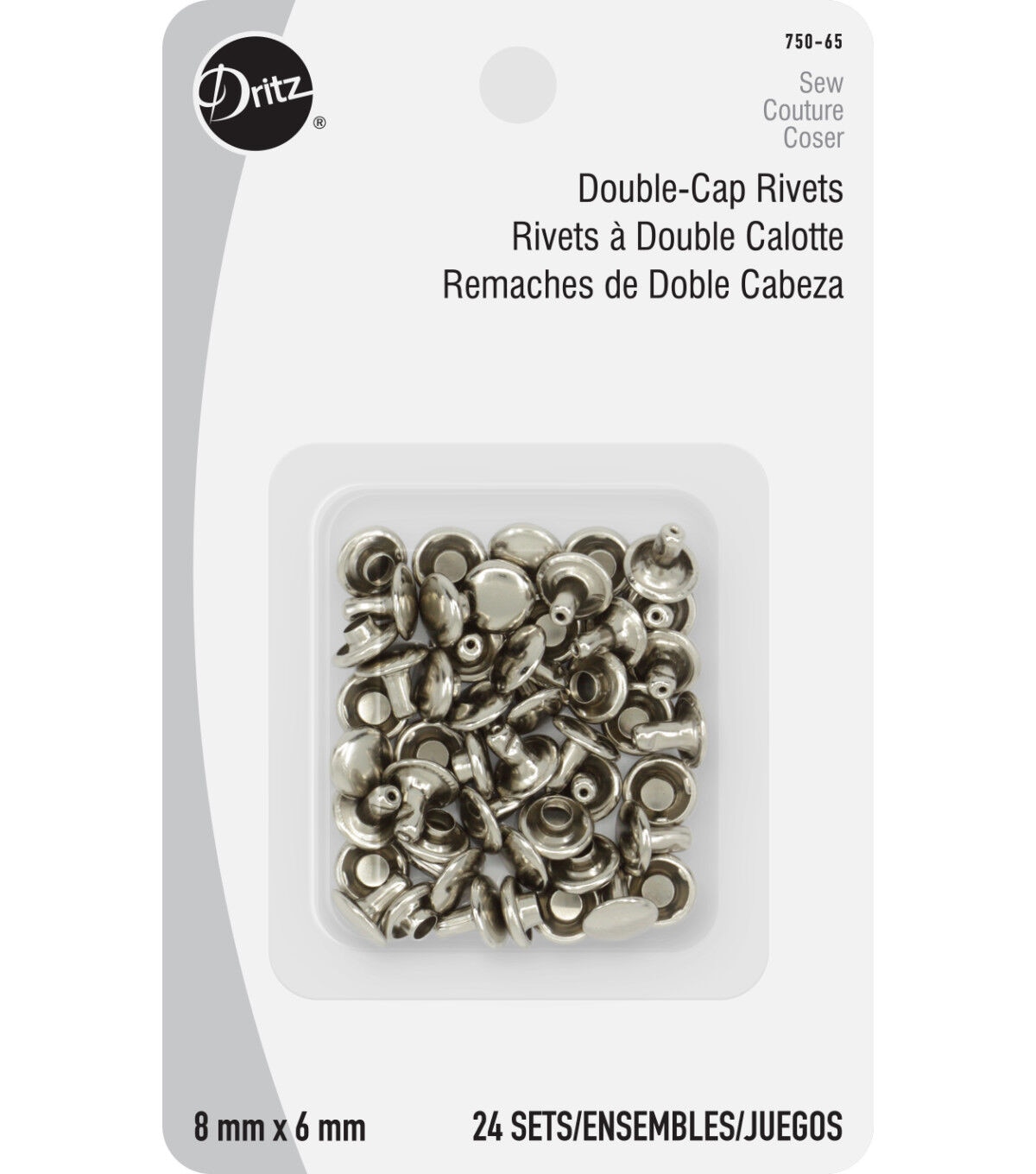 Save yourself from sewing through hard-to-stitch projects using the Dritz Double-cap Rivets - Nickel. This pack includes 24 sets of rivets sporting a nickel finish. They secure multiple layers of material together and work perfectly as a decorative accent on handmade projects and accessories. The double cap provides a finished appearance on the front and back sides of your project. You can apply these rivets effortlessly with the Dritz Double-Cap Rivet tools.