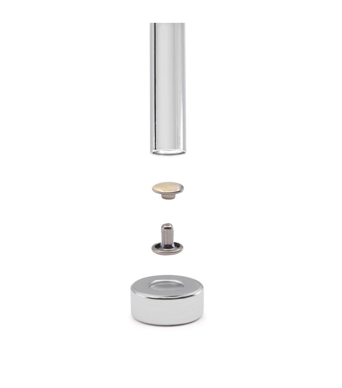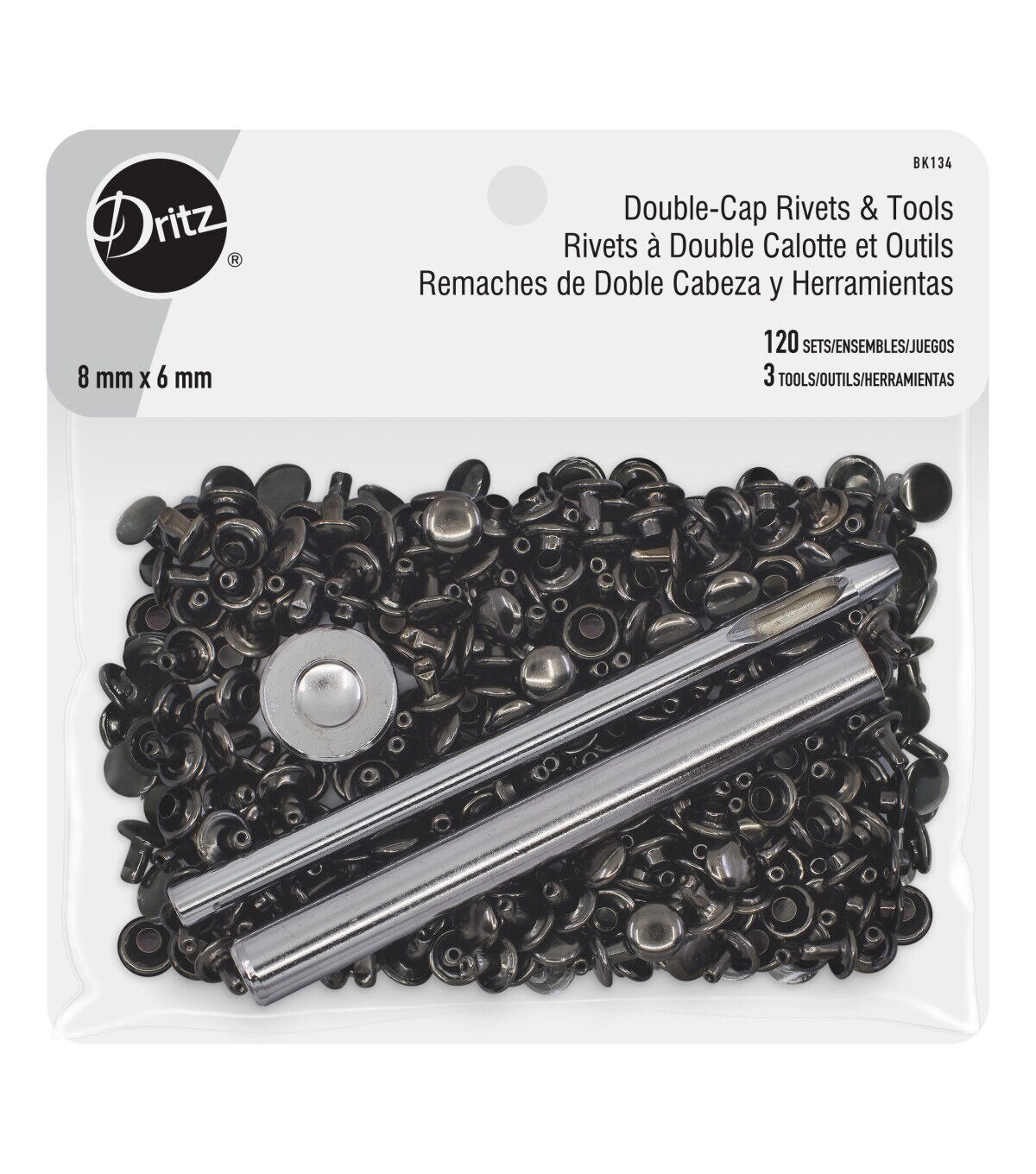 Use the Dritz Double-cap Rivets & Tools Set to secure multiple layers of material together and as a decorative accent on handmade projects and accessories. This pack contains 120 sets of rivets and three hand tools for application. The double-cap feature provides a finished appearance on the front and back sides of your project.