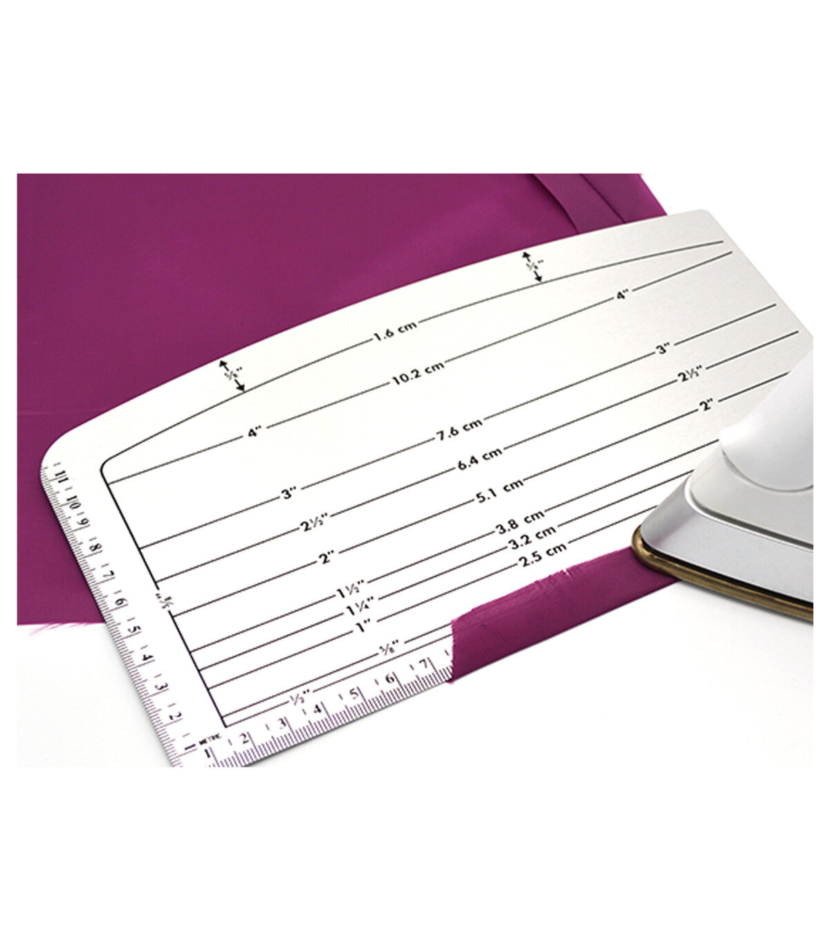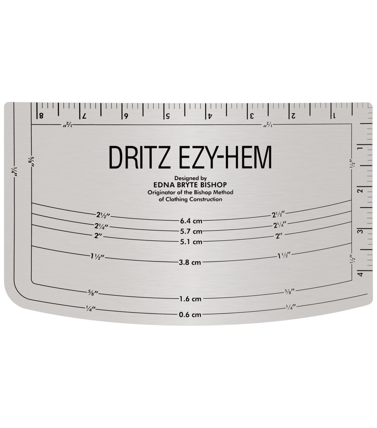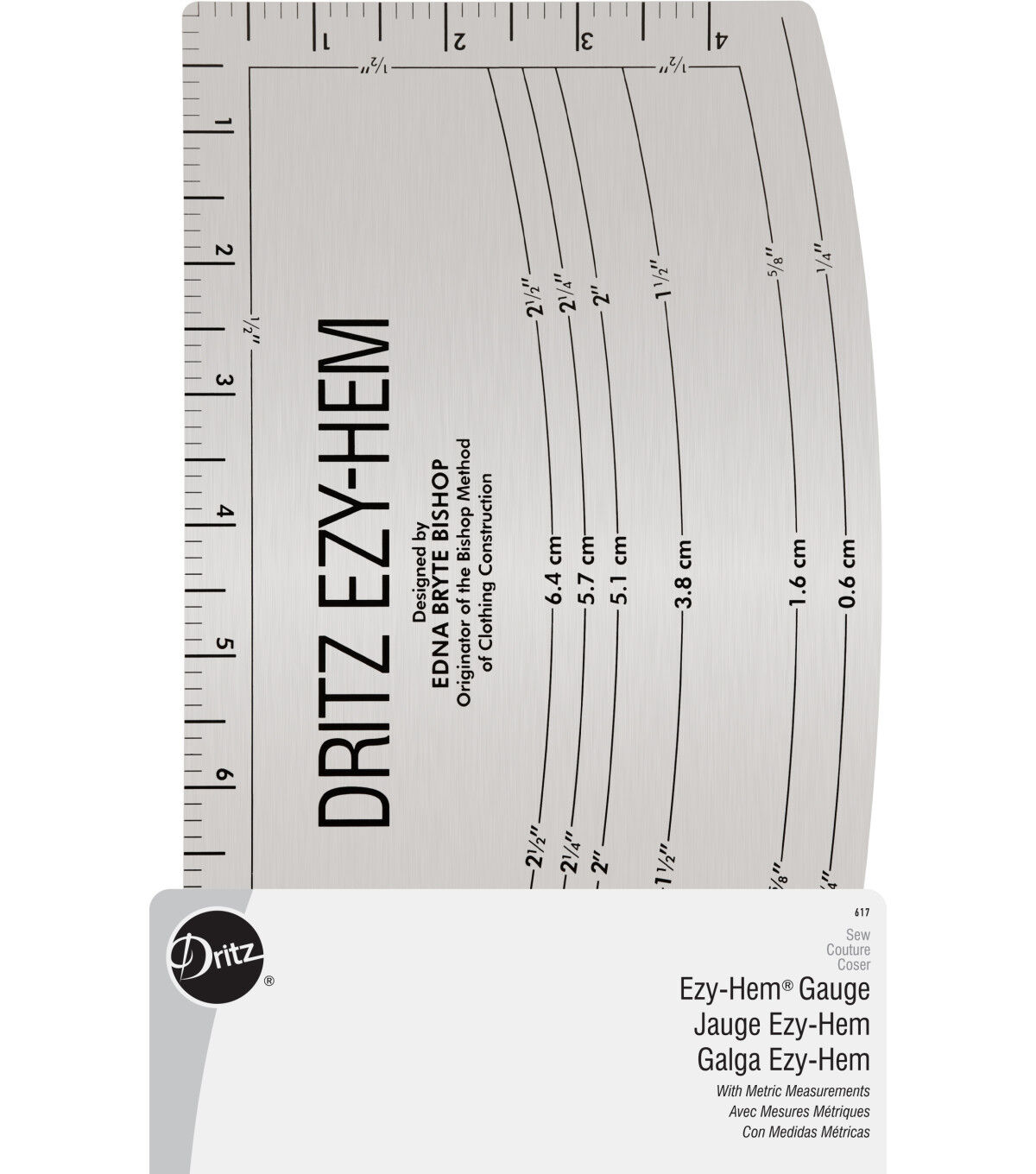 The Dritz Ezy-hem Gauge with Metric Measurements flaunts a perfect combination of curves and right angles and is ideal for pressing turned edges and straight or curved hems. It will make a handy addition to your stitching kit. You can also use this hem gauge for shaping waistbands, belts, pockets and more.