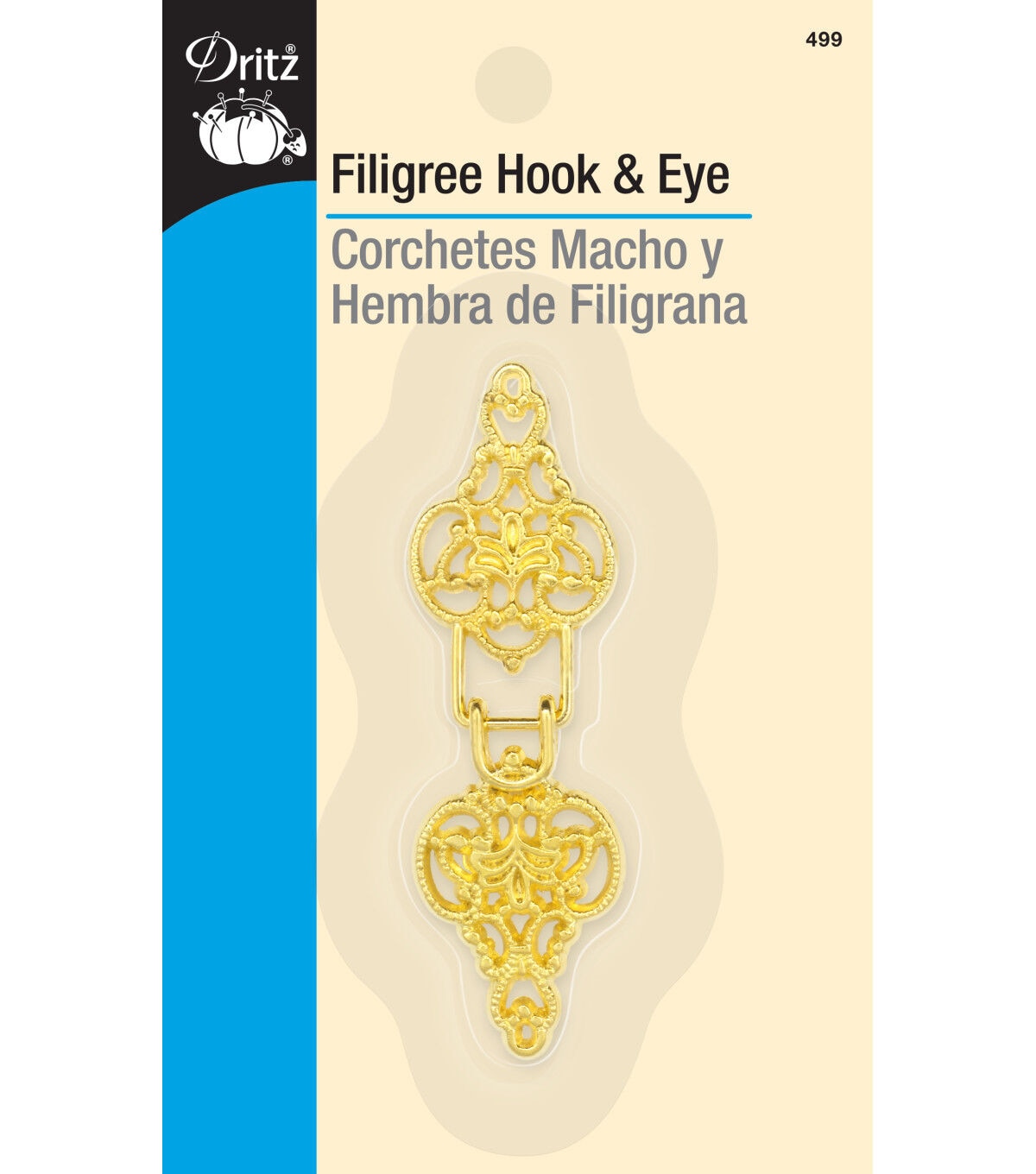 Add decorative closure to vests, jackets and purses using the Dritz Filigree Hook & Eye - Gold. This gold-toned filigree hook-and-eye set will make your handmade creations unique. It is washable and dry cleanable. You can hand sew the hook onto your garment using gold or monofilament thread.