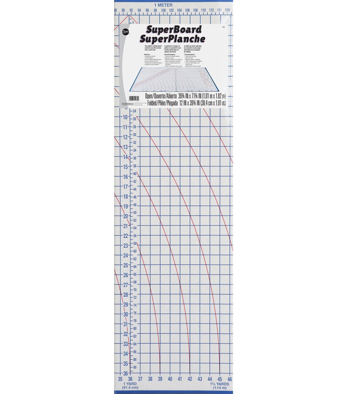 Easily cut fabrics for your sewing, craft and home decor projects with the Dritz Foldable Superboard Cutting Surface. It is made of a sturdy Kraft board and offers a spacious work surface. This superboard comes with markings in both directions and lines for cutting nine different widths of bias strips and patterns for scallops and circles.
