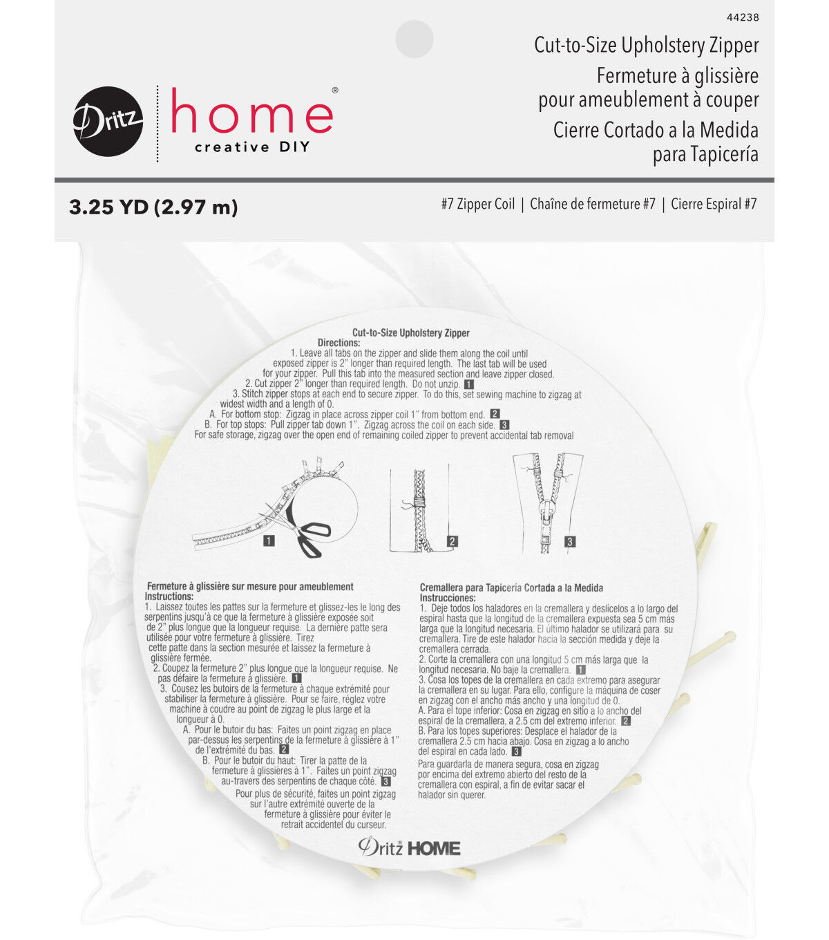 Complete your upholstery projects with ease using the Dritz Home Nylon Cut-to-size Upholstery Zipper. This pack includes a 3.25 yards long upholstery zipper that can be cut to desired sizes. It is made of nylon. You can use it on pillow cushions and slipovers. Choose zippers in different shades, each sold separately.