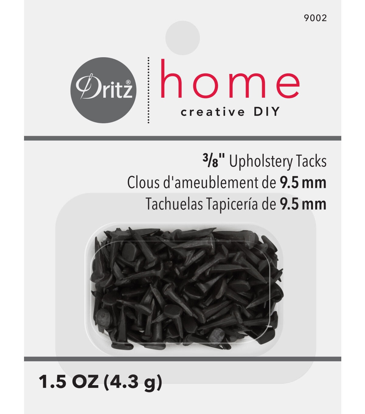 The Dritz Home Upholstery Steel Tacks - Black is a great addition to your tool kit for all your home improvement or home decor projects. This pack with 1.5 ounces of sturdy steel tacks is a great way to re-upholster furniture, making them like new. Use them to safely secure material such as muslin fabric and top covers or to attach decorative accents.