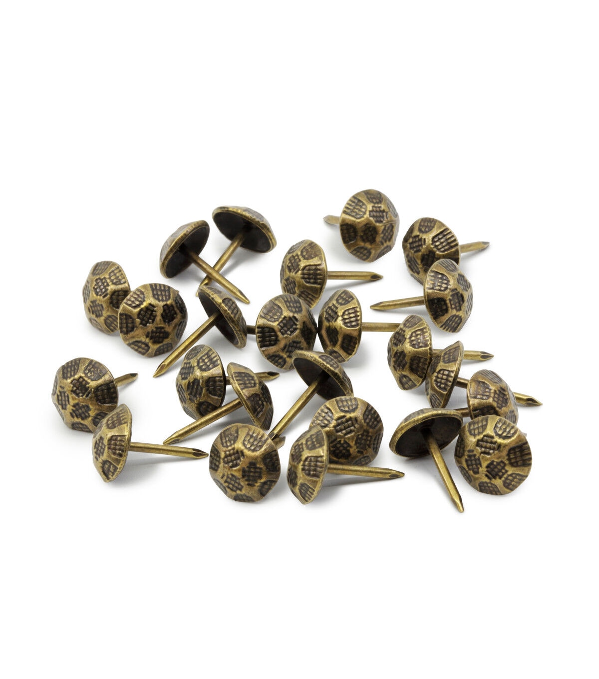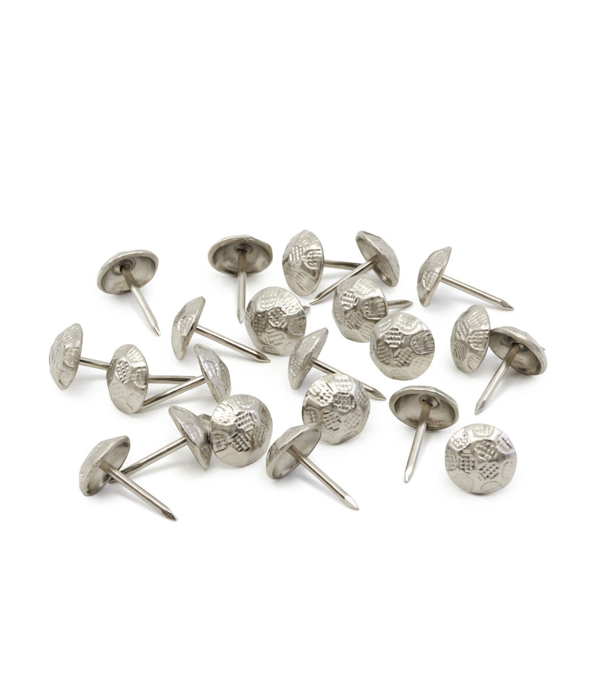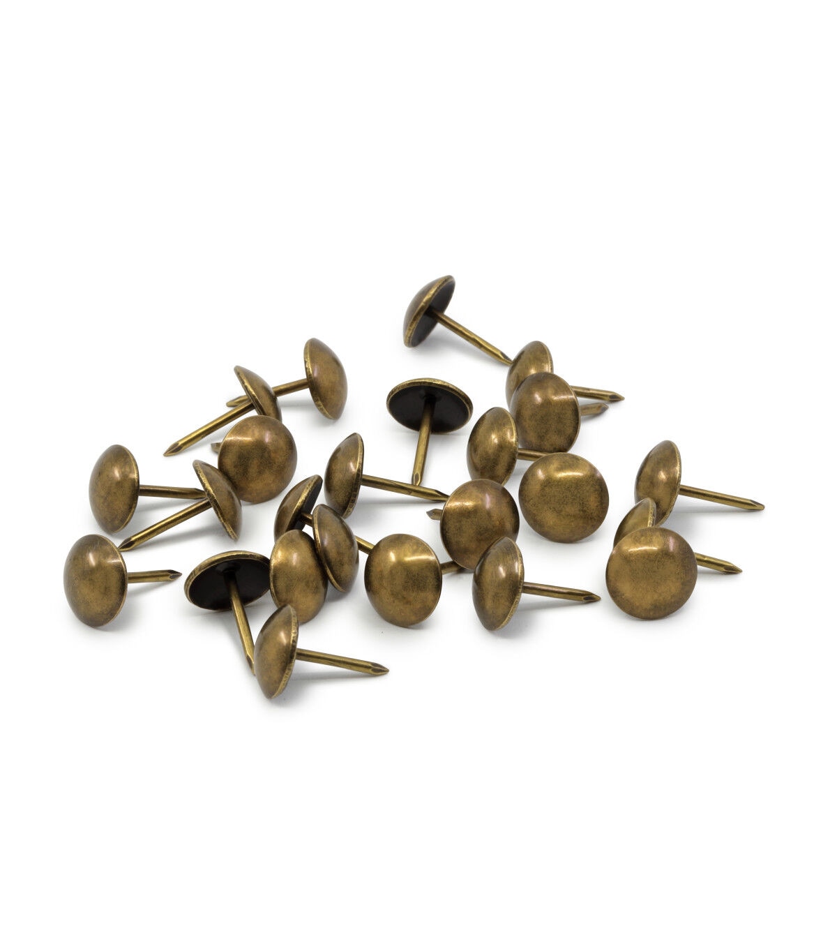 Design stunning couches, chairs, ottomans or sofas with the Dritz Home Decorative Nails. This pack contains 24 decorative upholstery nails that measure 0.44 inches. They are designed with smooth heads for trimming, covering tacks and securing fabrics. Use these sturdy decorative nails to reupholster furniture and for other home decor requirements. These nails are available in a variety of colors and finishes, each sold separately.