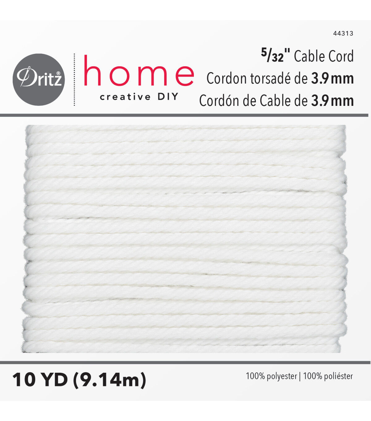 The Dritz Home Polyester Cable Cord - White is an essential addition to your home sewing kit. This cable cord measures 10 yards and sports a white shade. You can use this cord, made of 100% polyester, for indoor and outdoor decor, sportswear and crafts. It is machine washable and dry cleanable.