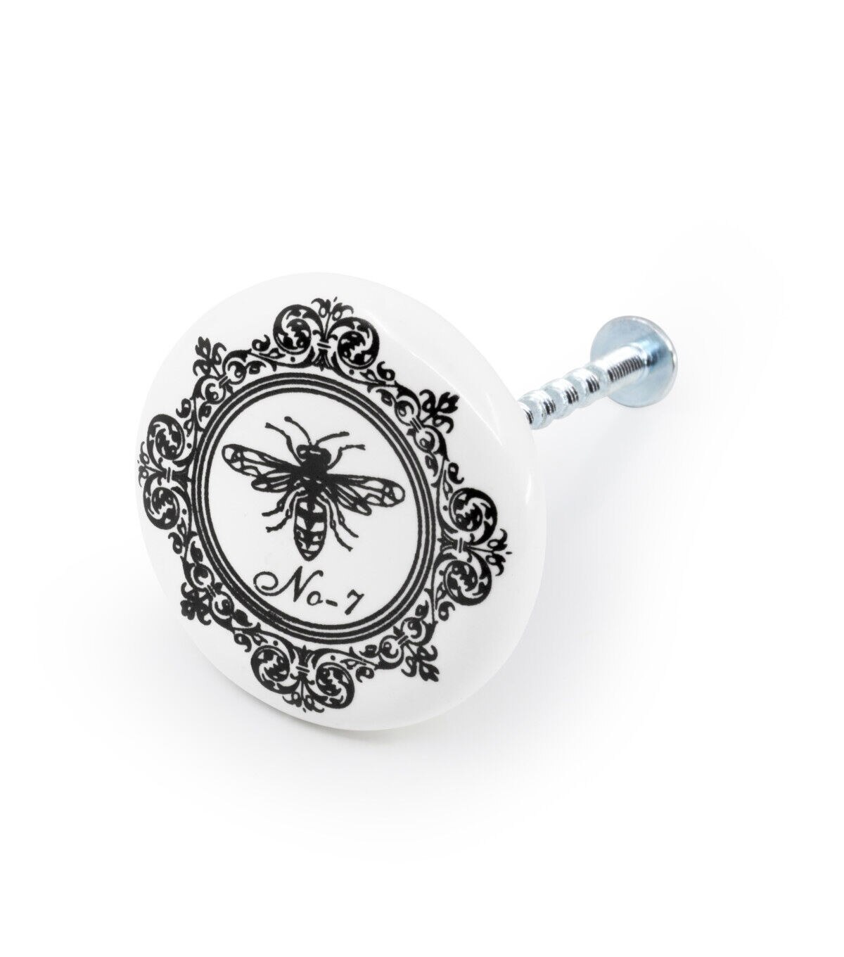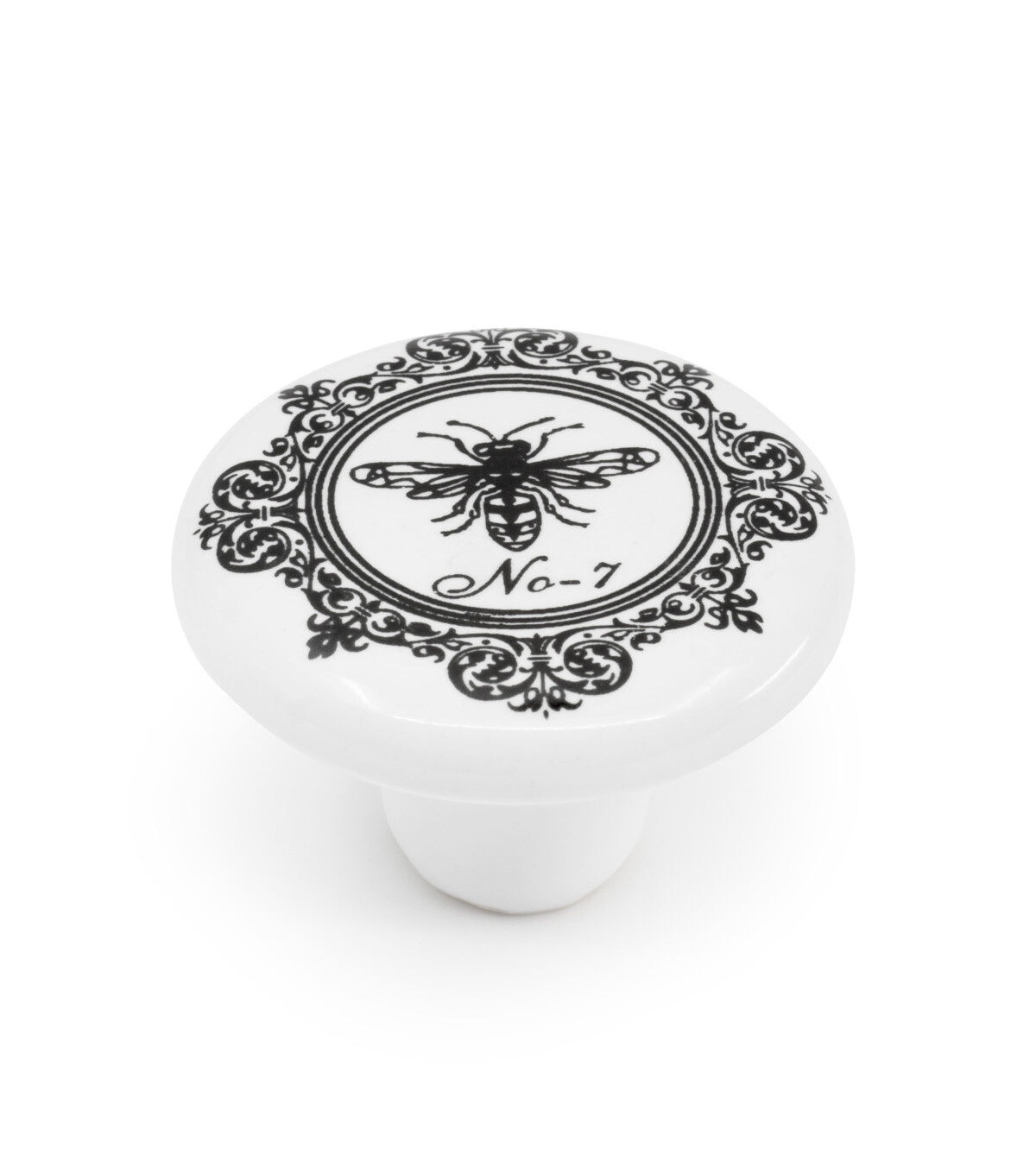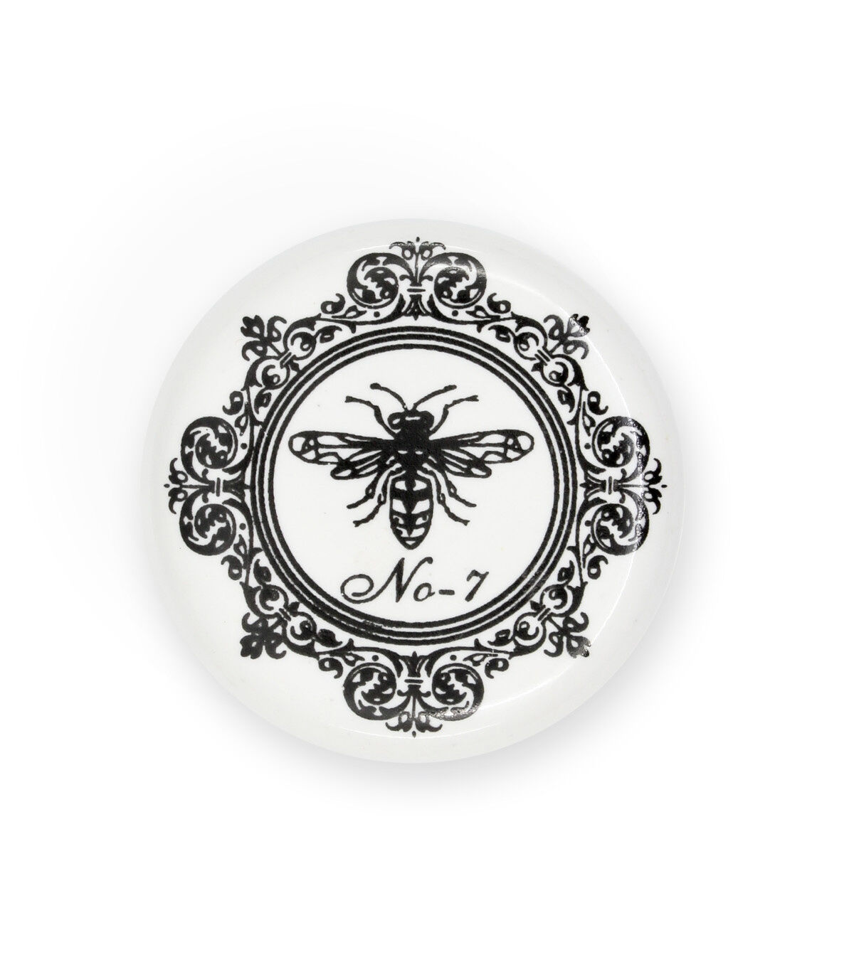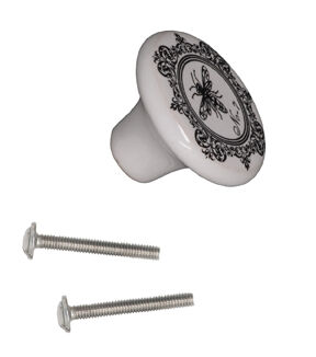 Accentuate a favorite dresser or cabinet quickly and easily by replacing existing hardware with the Dritz Home Ceramic Knob - Bee. This pack includes a hand-crafted knob that measures 1.5 inches wide and a 1.5-inch long screw. The knob flaunts a white shade with a print of a bee in the center. Use similar knobs of the same type or mix and match them for a unique look.