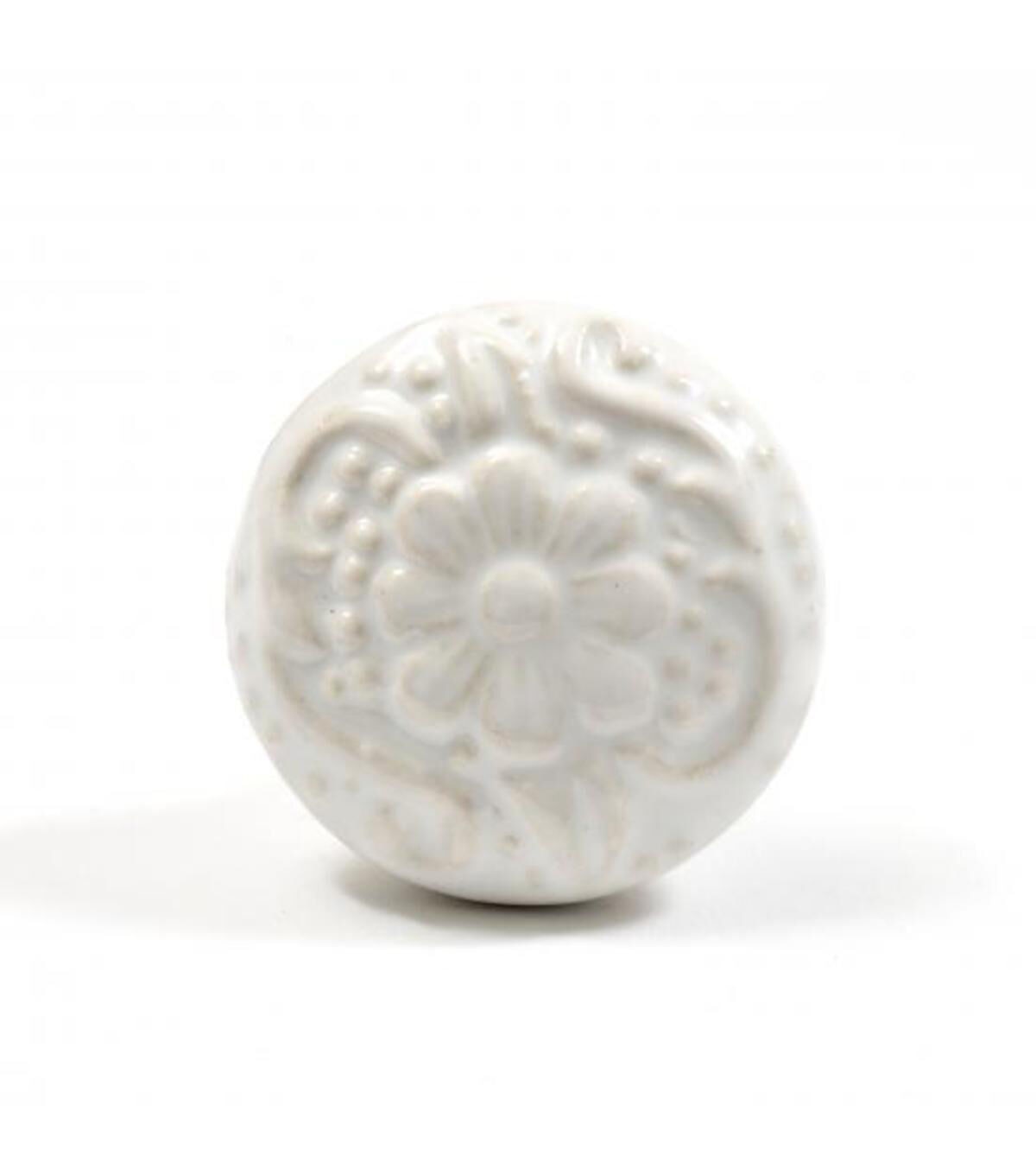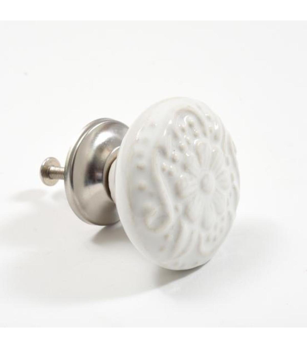 Refurbish a favorite dresser or cabinet quickly and easily by replacing existing hardware with the Dritz Home Ceramic Embossed Flower Knob - White. This pack includes one scallop knob that measures 1.25 inches and a 1.5-inch screw. Use similar knobs, sold separately, or mix and match them with knobs in different styles for a unique look.