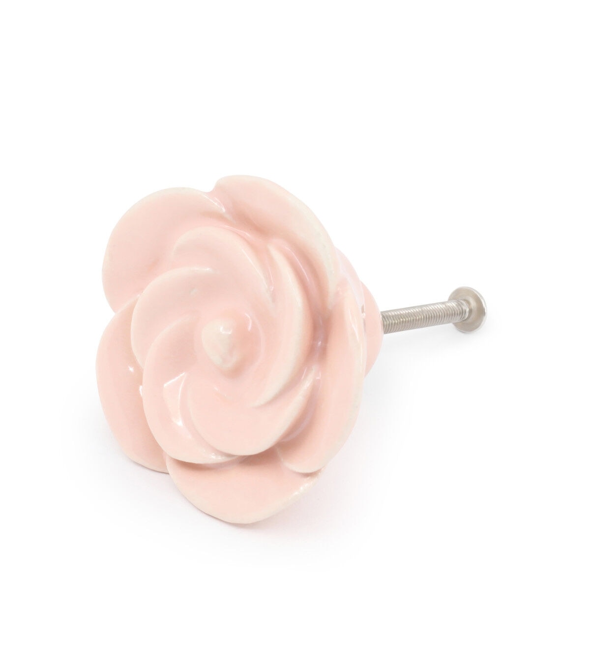 The Dritz Home Ceramic Flower Knob - Pale Pink will make a unique and interesting addition to your home decor. This pack contains a doorknob that measures 1.25 inches and a 1.5-inch screw. It is one of the easiest ways to update a piece of furniture's built-in cabinet by swapping out the old hardware with something new.
