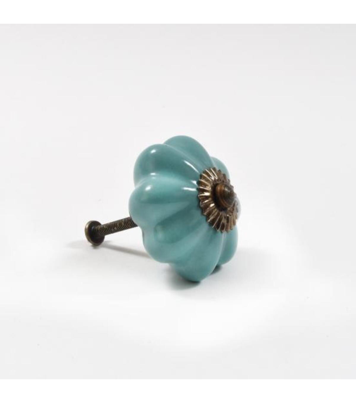 Refurbish a favorite dresser or cabinet quickly and easily by replacing existing hardware with the Dritz Home Ceramic Scallop Knob - Turquoise & Brass. This pack includes one scallop knob that measures 1.25 inches and a 1.5-inch screw. Use similar knobs, sold separately, or mix and match them with knobs in different styles for a unique look.