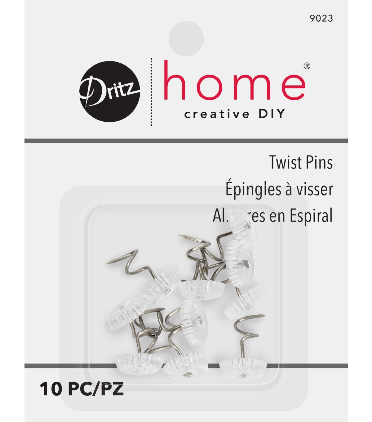 Add a decorative edge to your upholstery projects with the Dritz Home Twist Pins with Clear Heads. Designed with 12-mm decorative clear plastic heads, these twist pins are easy to use and perfect to hold slipcovers, arm covers, dollies or mattress pads firmly. Made from high-quality material, these upholstery twist pins are durable and rust-free. They can be a great addition to your home decor accessory kit. This pack includes ten 0.75-inch twist pins.