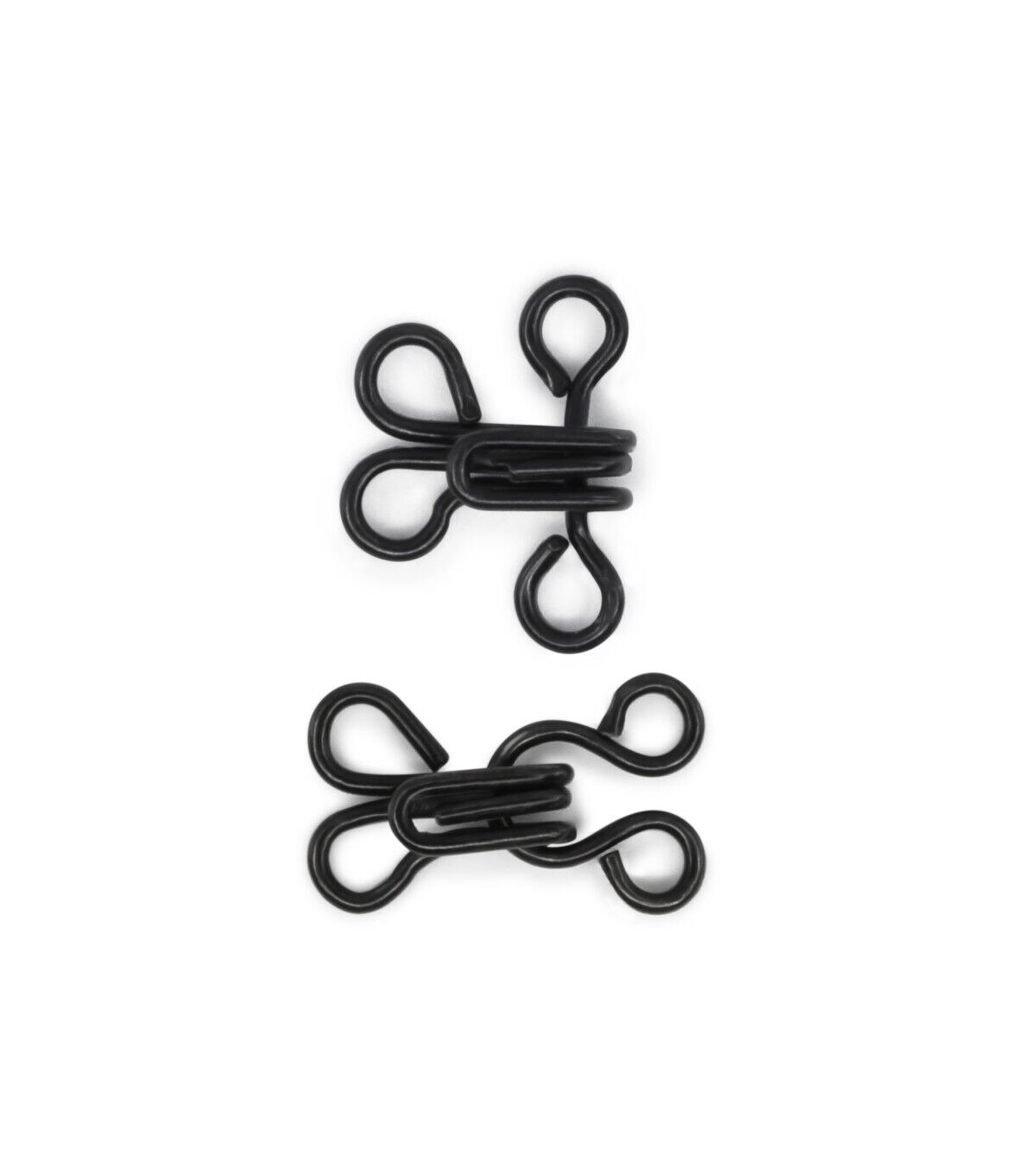 The Dritz Steel Hooks & Eyes - Black are specially designed to hold finished edges together and are easy to use. These steel hooks and eyes provide a secure hold for your garments or sewing projects while staying out of sight. You can use them for your various fabric needs from fastening skirts and pants to securing dresses, corsets and much more.