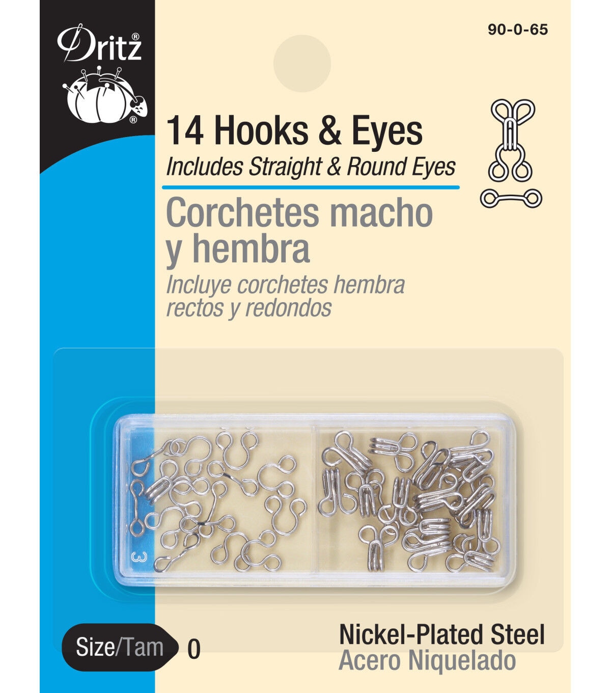 The Dritz Nickel-plated Steel Hooks & Eyes are a must-have in your sewing supplies. Team these hook-and-eye closures with a zipper and add them to slacks, skirts, dresses and much more. This pack contains seven round eyes and seven straight eyes in size zero.