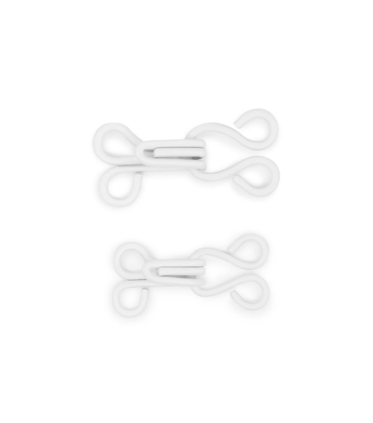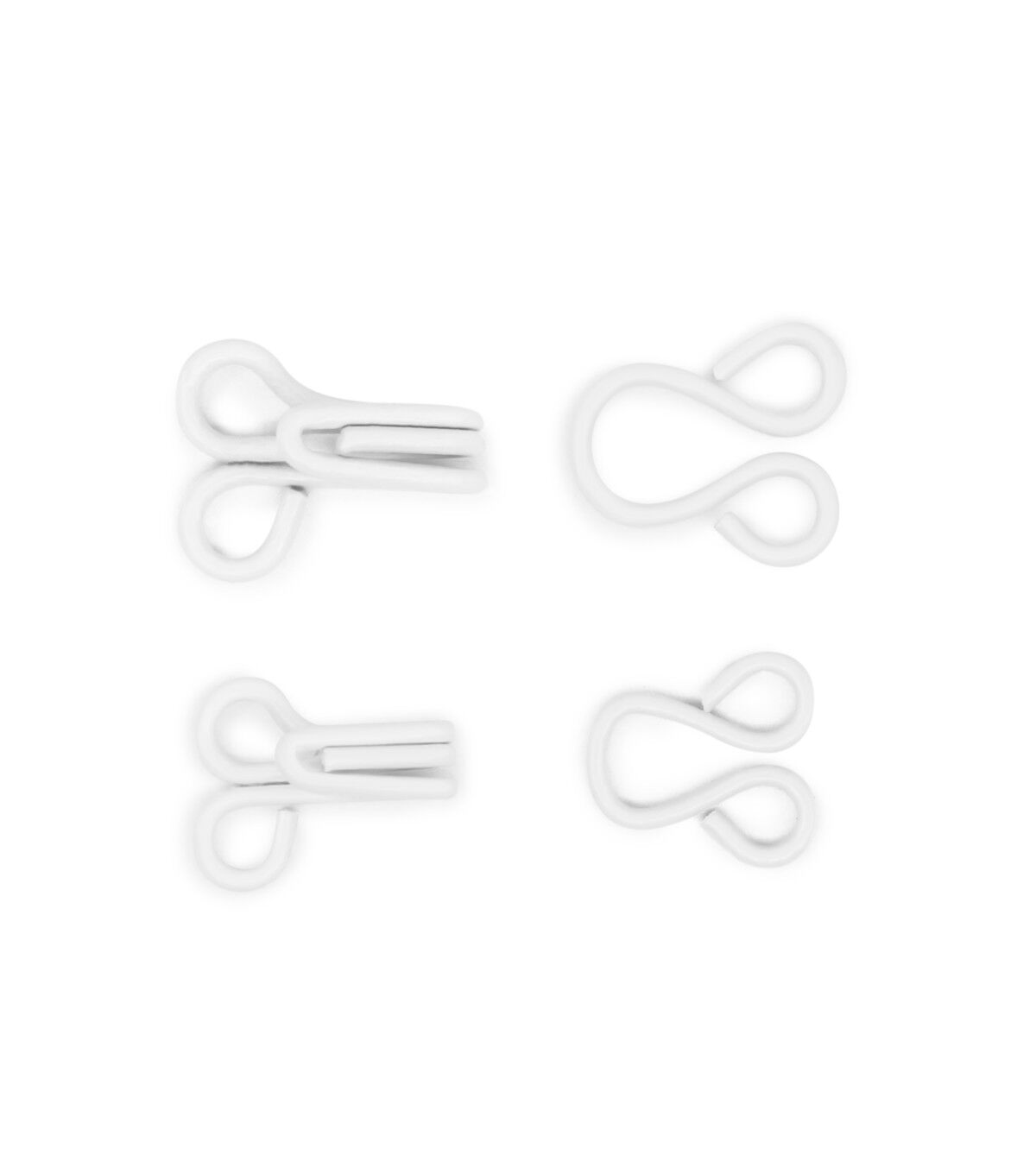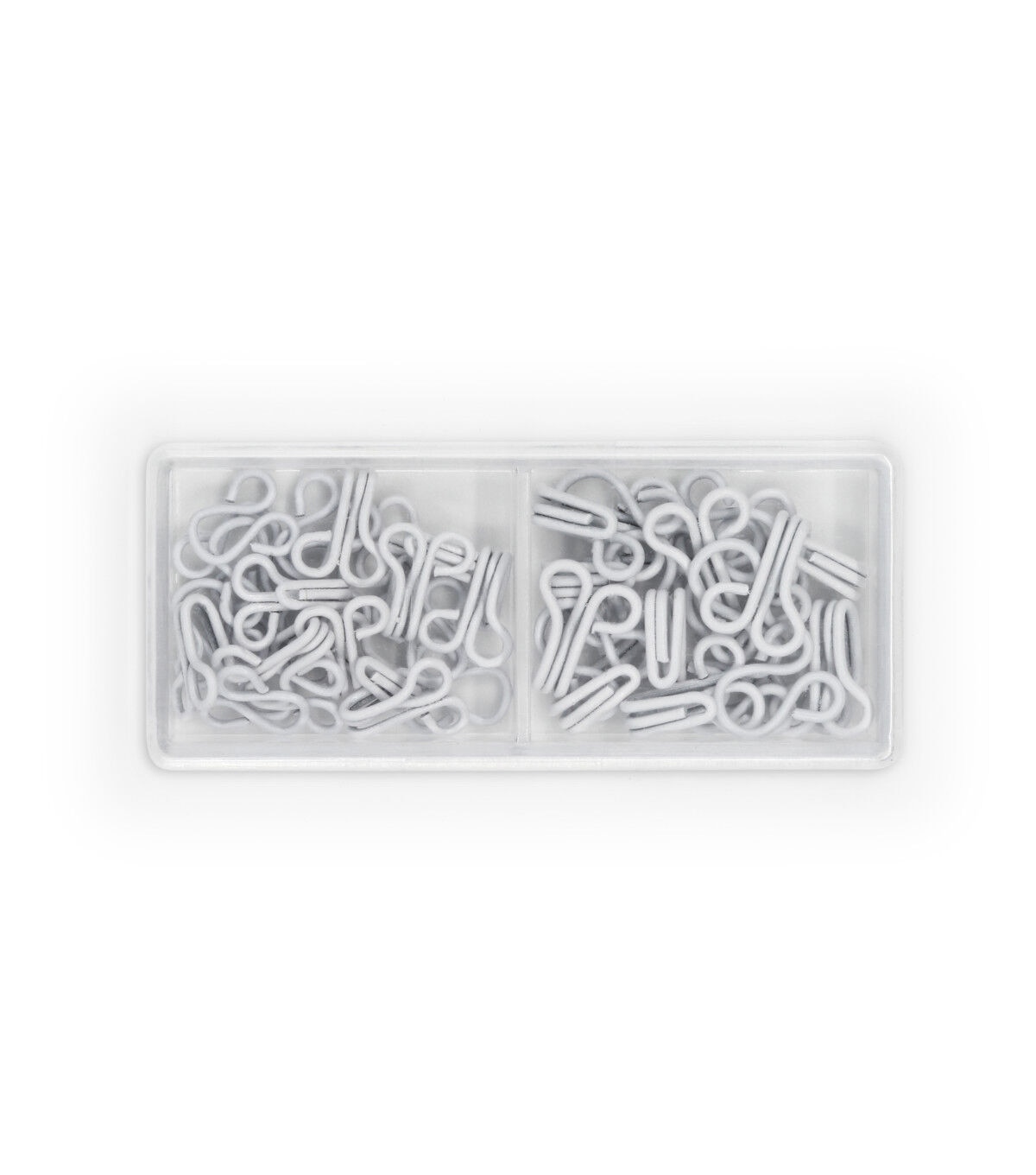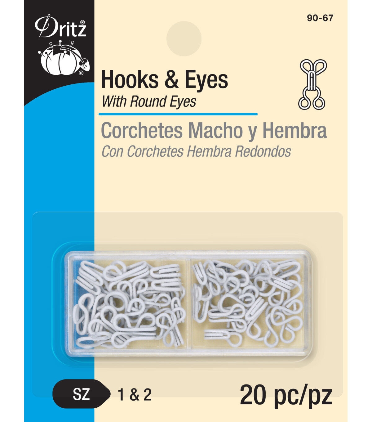 Accentuate and hold fabrics together at the same time with the Dritz Steel Hooks & Eyes - White. These closures are designed to hold the finished edges of clothes. Use them as stylish embellishments on waistbands of pants, skirts and shorts or for joining the tops of dresses and blouses. This pack includes 20 hooks and eyes in sizes 1 and 2.
