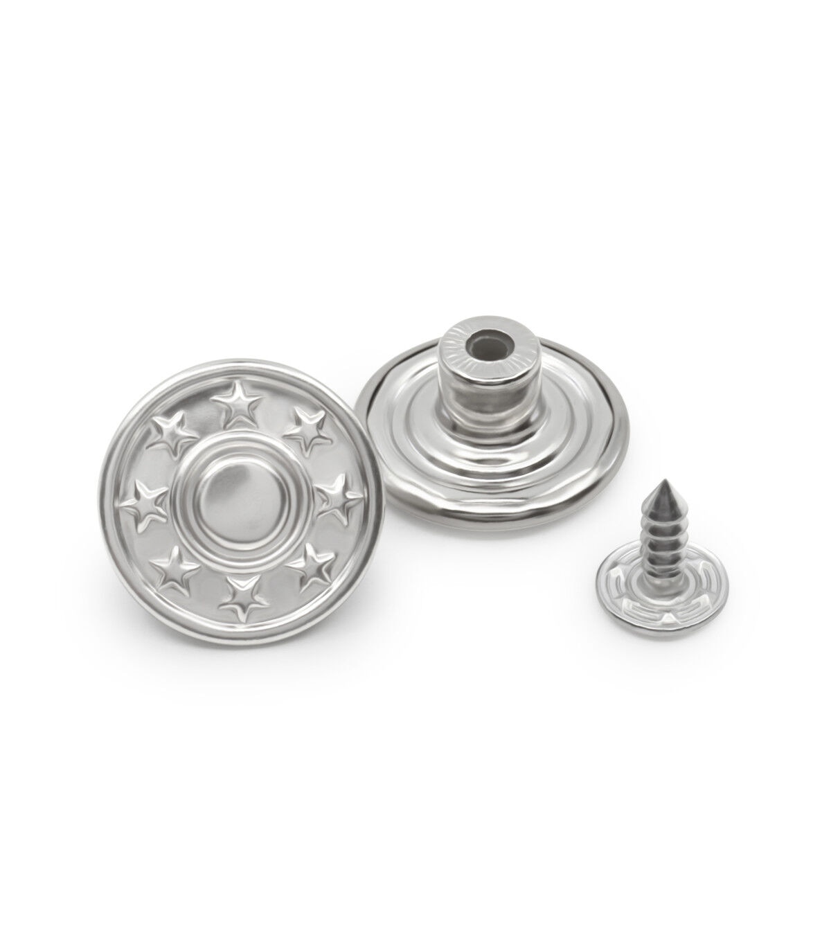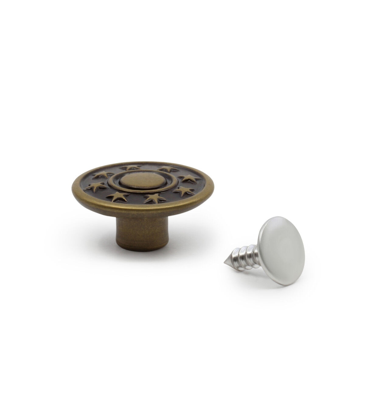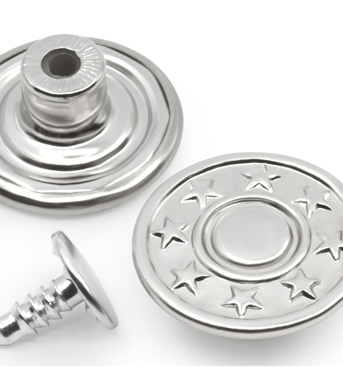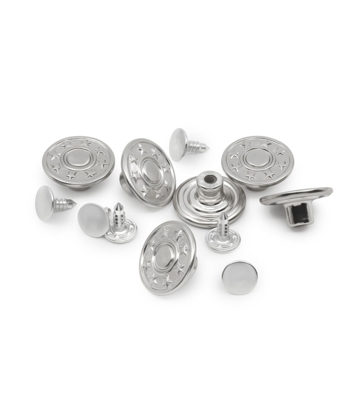 Use the Dritz Bachelor Jean Buttons 11/16'' Pack of 6 to add detail to your handmade denim projects. This pack includes six 11/16-inch bachelor buttons, which are sturdy and durable. Like snaps, these no-sew jean buttons can be easily attached to your fabrics without the use of a needle. They are used mainly for keeping jeans, overalls and suspenders in place. Available in a variety of finishes, each sold separately.
