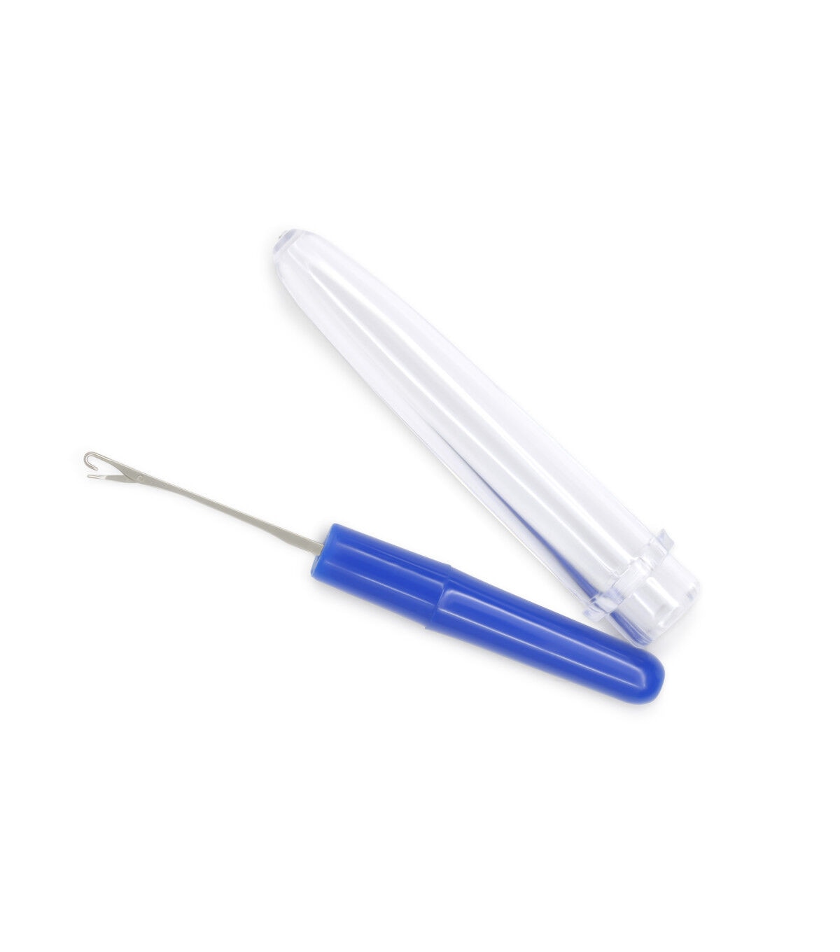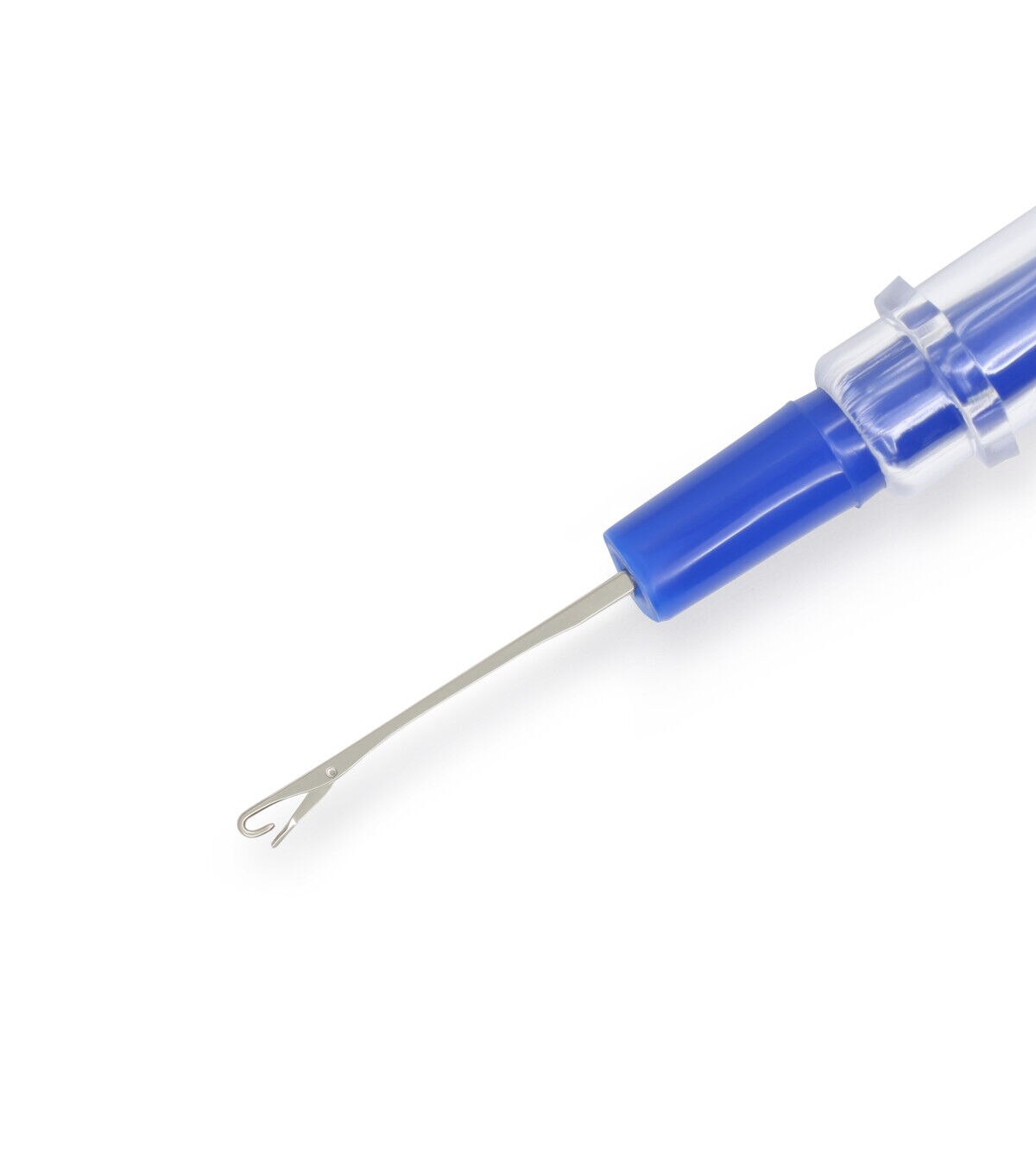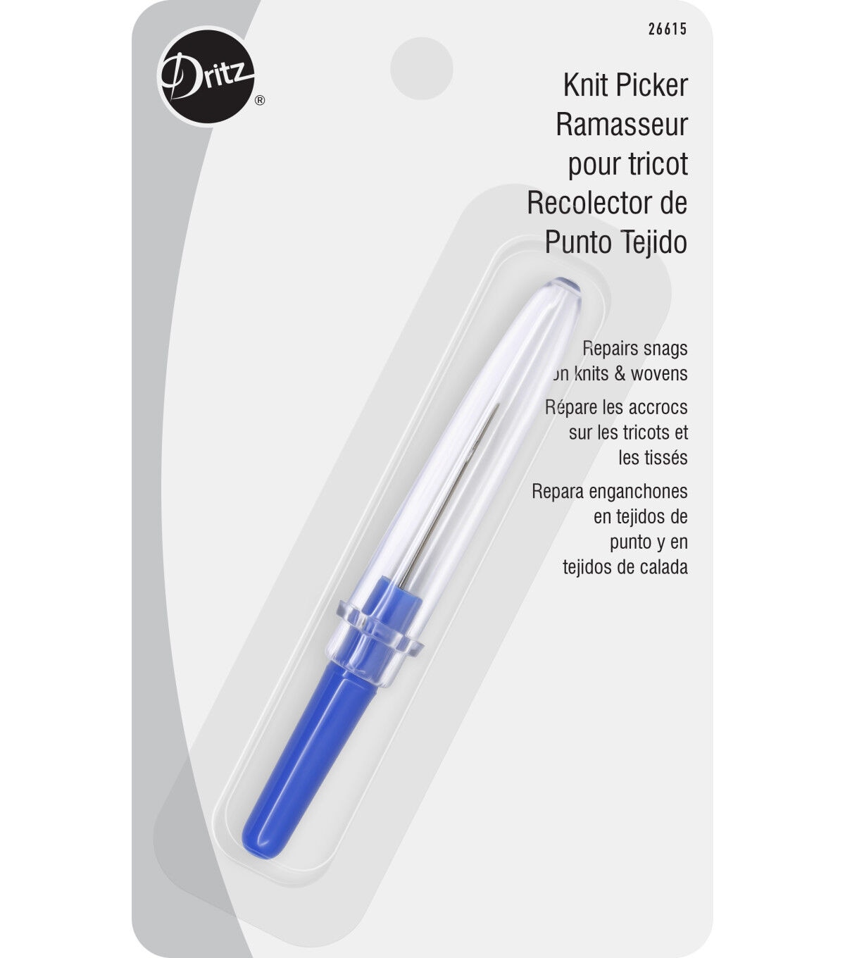 Repair snags on knitted and woven materials with the Dritz Knit Picker. This knit picker is designed with a tiny latch hook that you can use to hook snags, pull them through to the wrong side and fix them. It comes with a clear plastic cap that protects the latch hook tip when not in use.