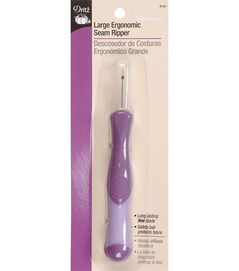 Change design patterns or alter outfits with the help of the Dritz Large Ergonomic Seam Ripper. This efficient seam ripper has a rounded design that offers a good grip and fits snugly in your hand. It can easily be held by those with arthritis or carpal tunnel. The ergonomic seam ripper is designed with a durable fine blade that is electronically ground for long-lasting sharpness and a protective ball for fabrics. You can use it to safely remove stitches, rip seams and open buttonholes on fabrics.