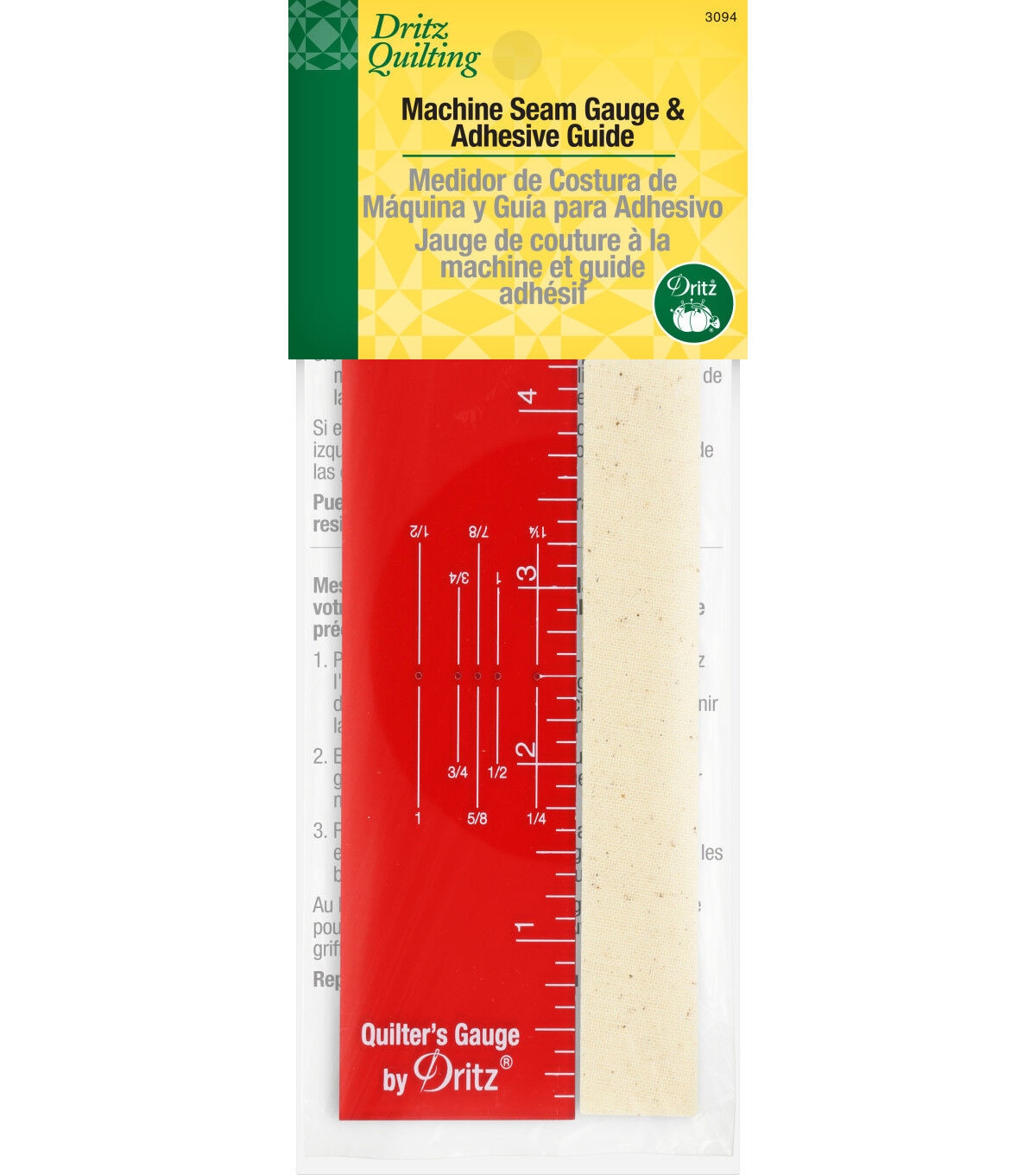 Sew straight lines every time with the Dritz Quilting Machine Seam Gauge & Adhesive Guide. This pack contains a plastic seam gauge and an adhesive guide. The adhesive guide is sure to be useful irrespective of the allowance while the seam gauge is repositionable and does not leave behind a sticky residue. it is easy to use and compact and ideal for professional and amateur sewers.
