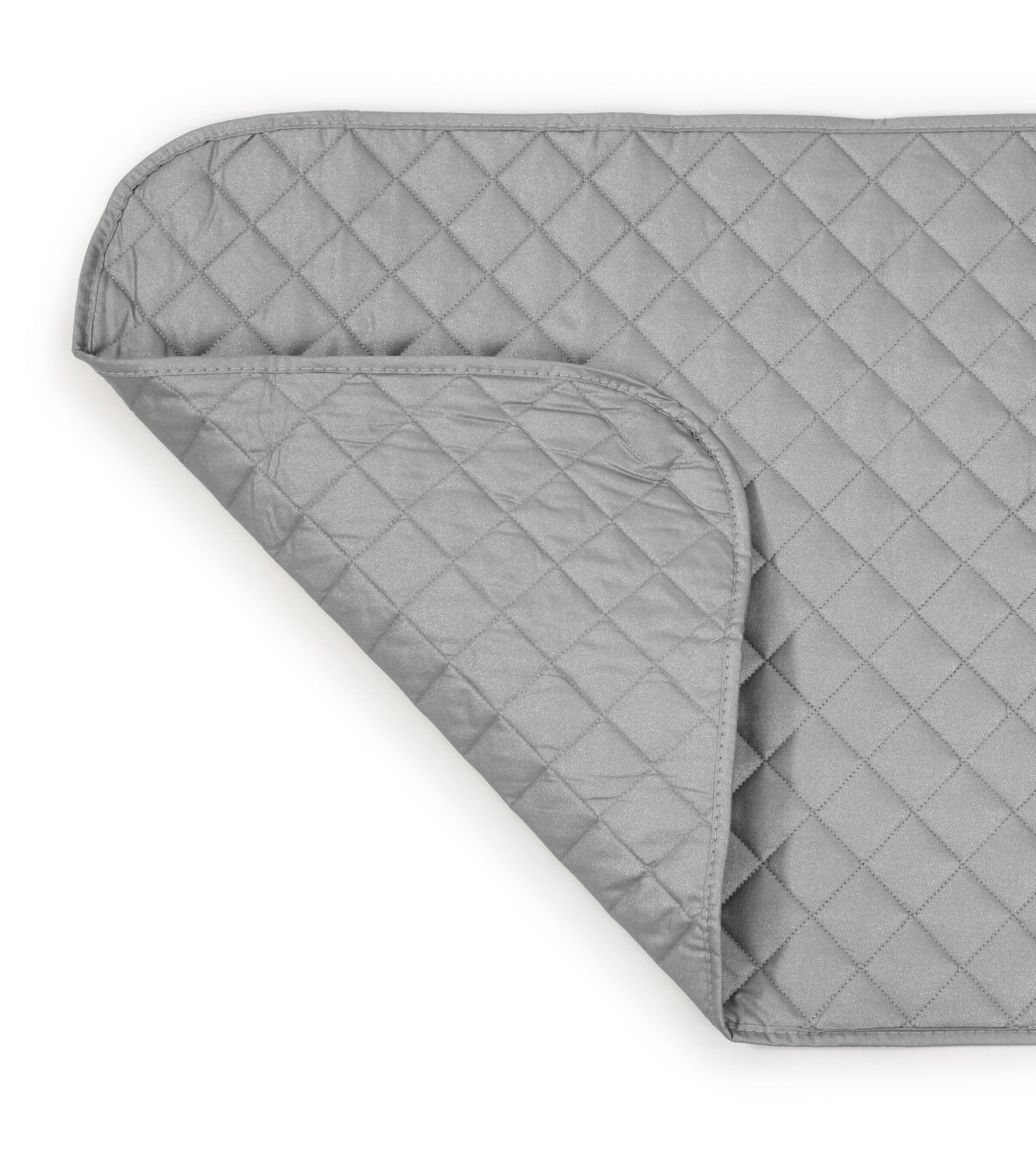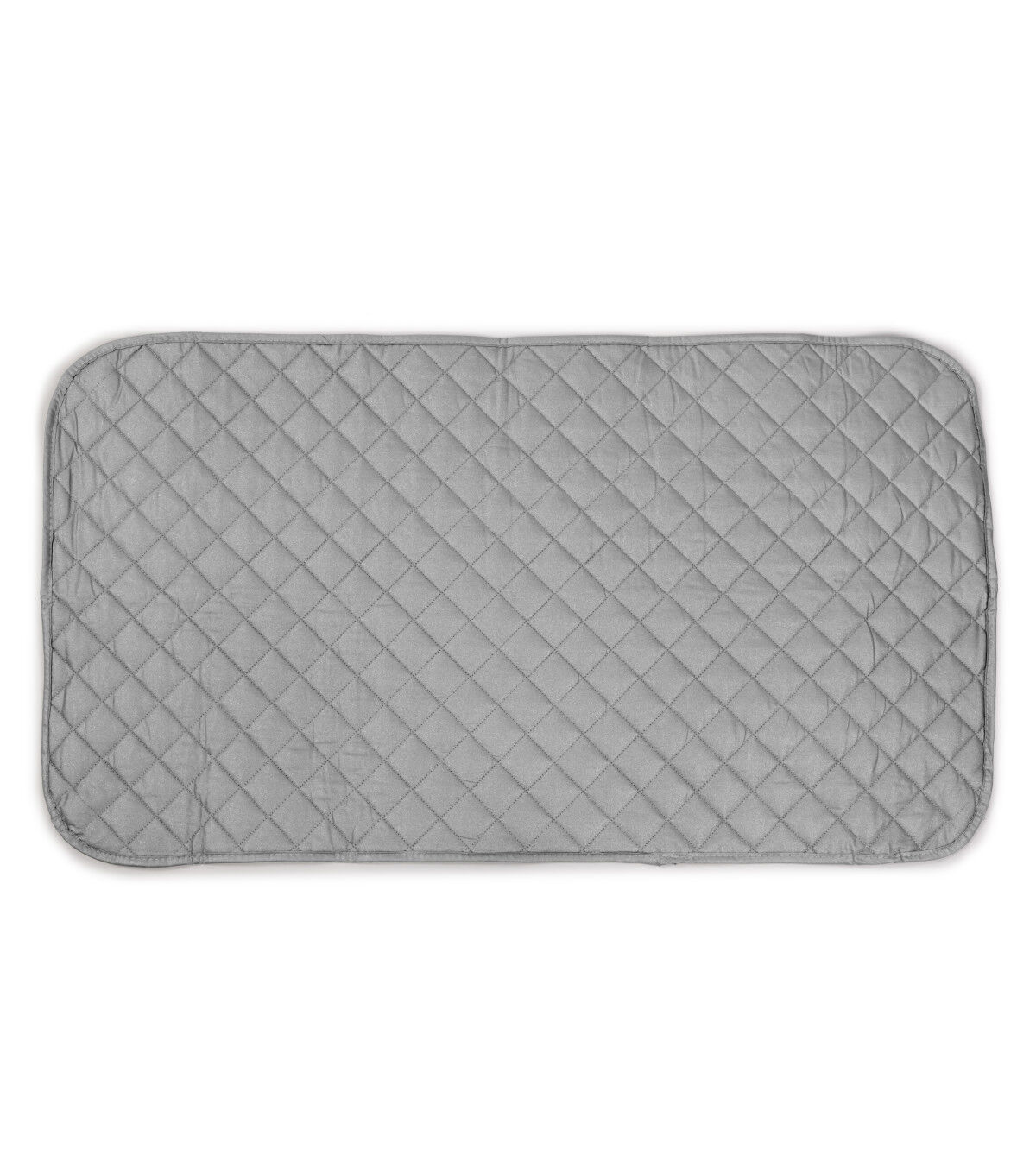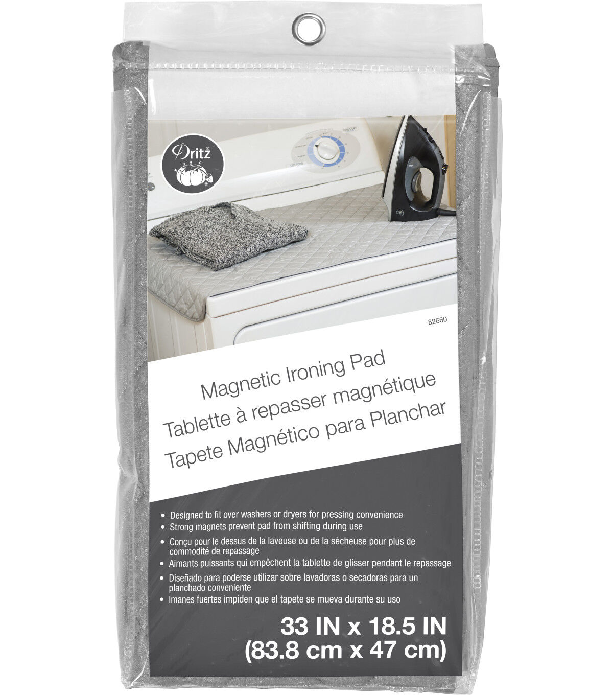 Use the Dritz Magnetic Ironing Pad for a convenient ironing experience. This magnetic ironing pad measures 33 x 18.5 inches. It is made from pure cotton and designed with a heat-reflective cover with 100% polyester padding between layers. The strong magnets prevent the pad from shifting during use.