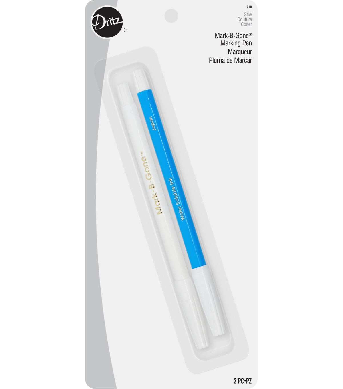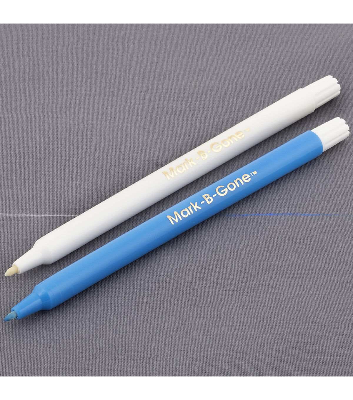 Use the Dritz Mark-B-Gone Marking Pens to draw applique lines, trace weaving sketches or mark quilting and needlecraft designs. This pack contains two water-soluble marking pens in blue and white. These pens are ideal for transferring pattern markings and for marking exact locations of buttons and embellishments in your fabric projects. The blue marking pen is used for marking light-colored fabrics and the white one for dark-colored fabrics. Wipe off the markings made by these pens using a damp cloth. For best results, use only on washable fabrics.