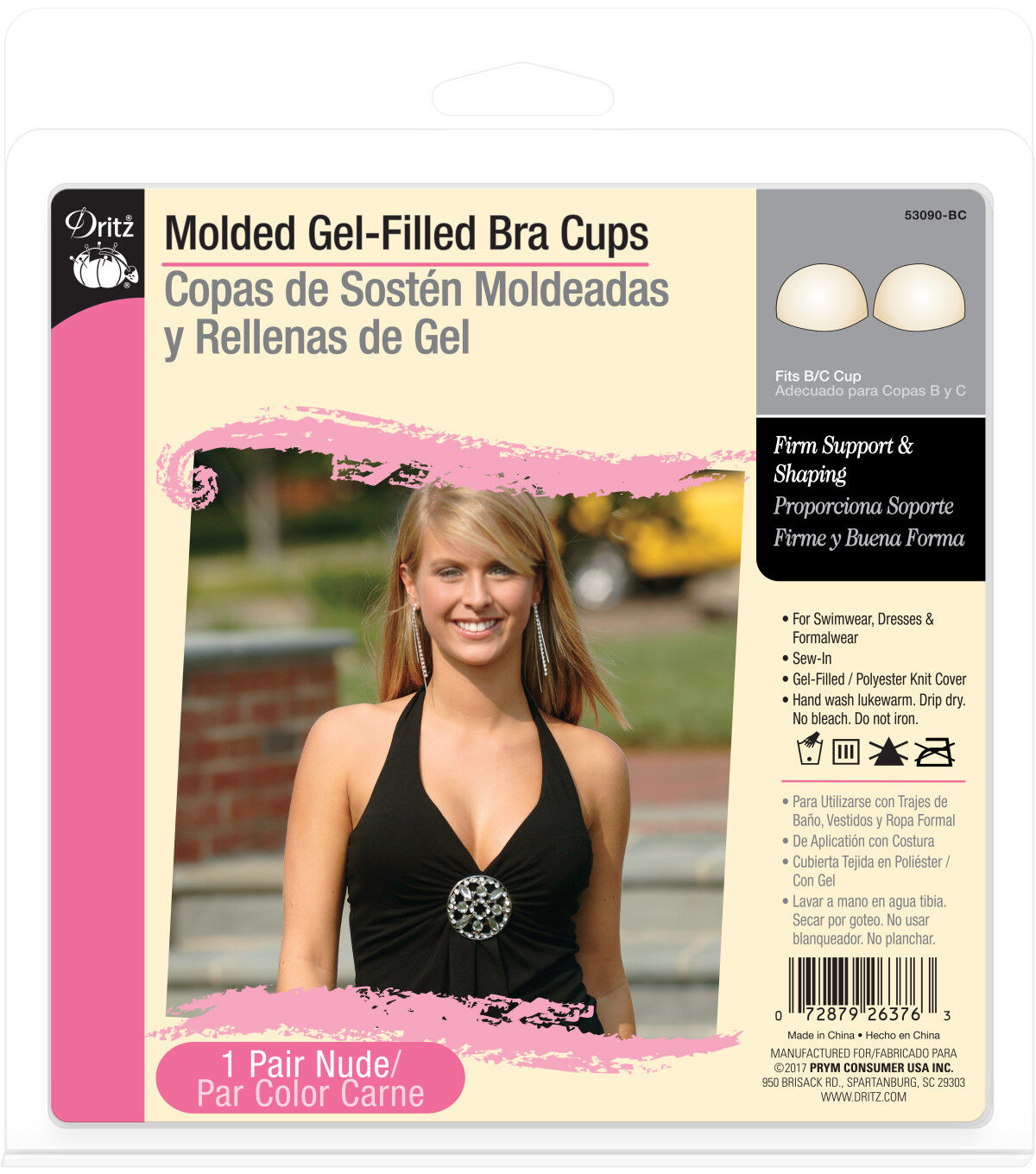 Insert the Dritz Molded Gel-filled Bra Cups - Nude into your outfits for a superb fit. These gel-filled cups can lift and shape your bust line, and offer support and defined form when you don t-shirts, formal wear, swimwear or party dresses. The sew-in bra cups are designed with a polyester knit cover and must be hand-washed.