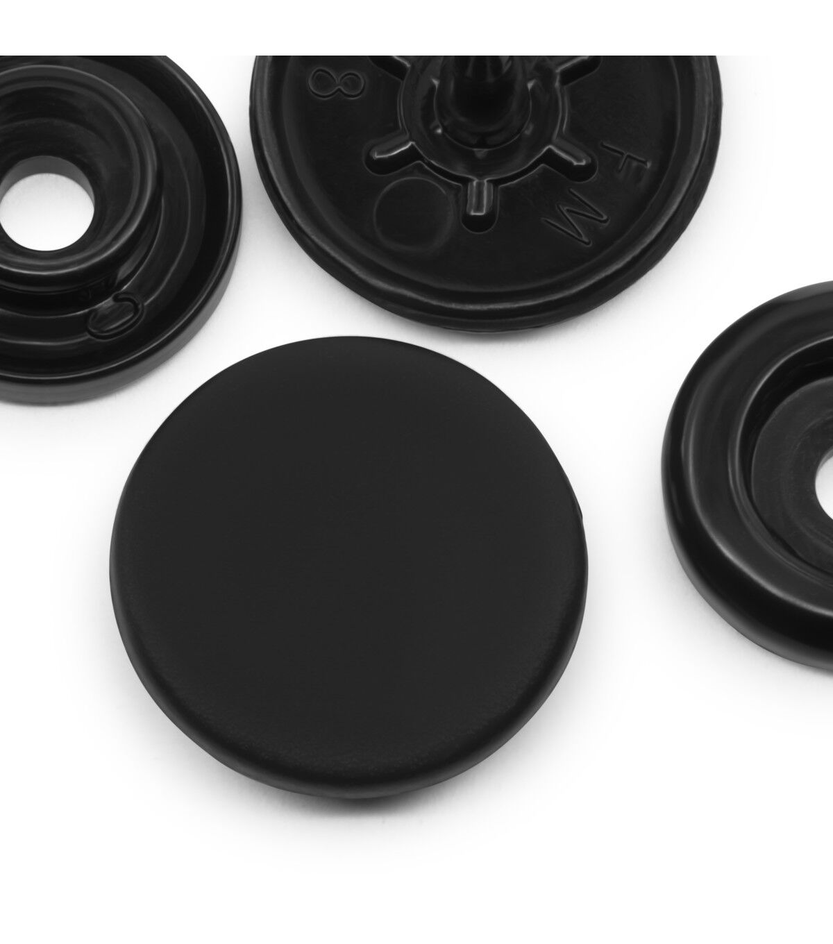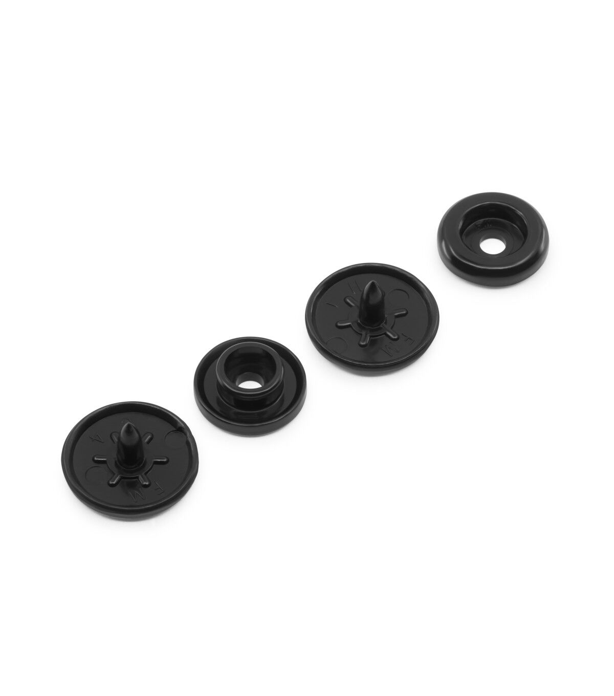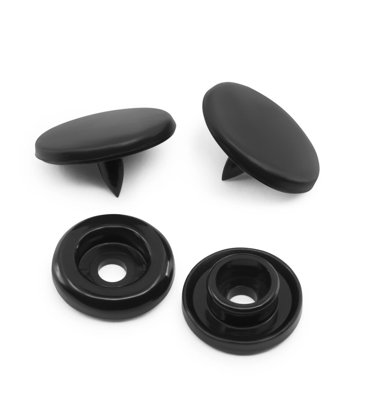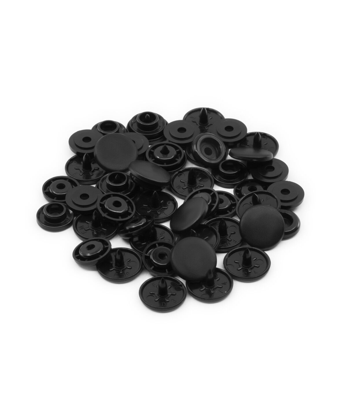 The Dritz Round Plastic Snaps - Black can be used on home decor, kids' clothing and more. These snaps are an easier alternative to buttons. Each set includes a decorative cap, socket, stud and round cap. They can be machine-washed and dried or dry-cleaned. Use the Dritz Plastic Snap Pliers, sold separately, to attach plastic snaps.