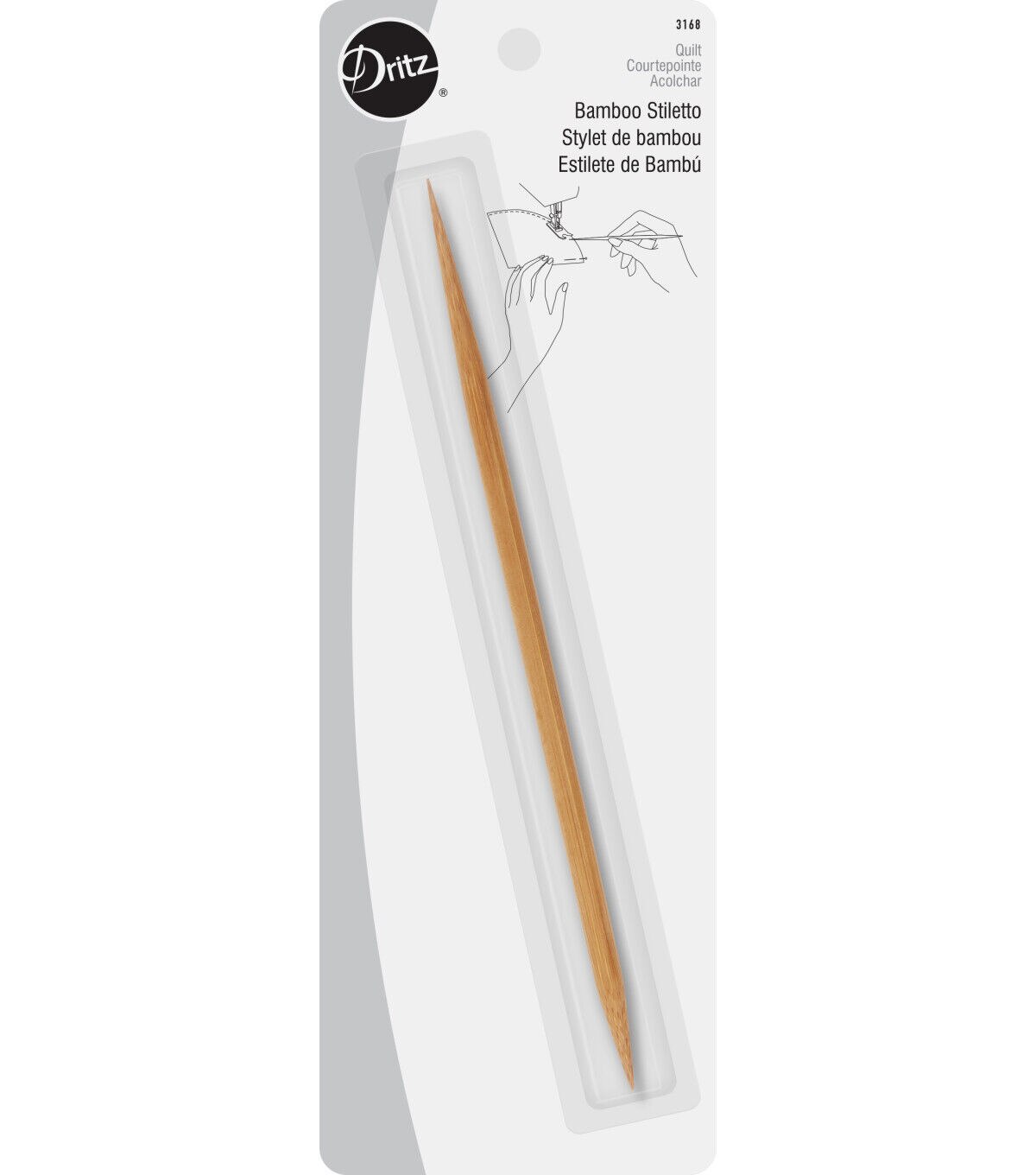 The Dritz Bamboo Quilting Stiletto is perfect to use when stitching fabrics on a sewing machine. This stiletto is designed with a sharp tip that grabs and adjusts the fabric when stitching straight or curved seams. Its sharp point keeps the fabric in position when sewing the end of seams. Use it to turn under seam allowance when pressing appliques. You can also use it to hold trims or embellishments in place when machine stitching.