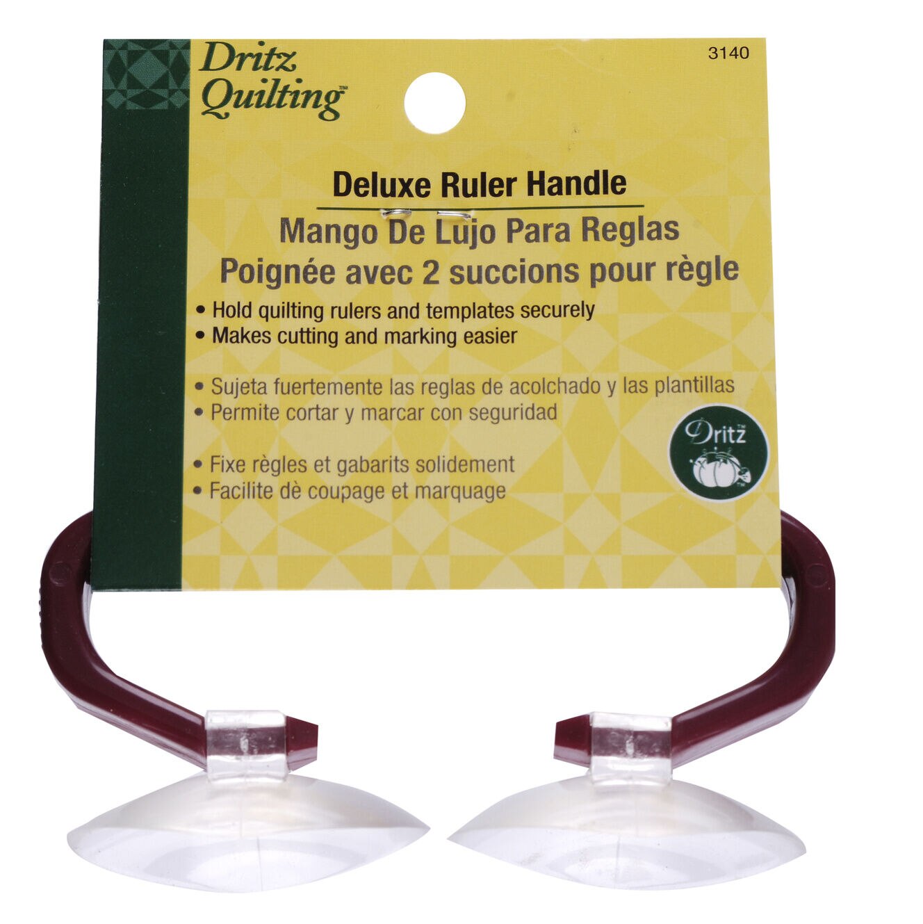 Add the Dritz Quilting Deluxe Ruler Handle to your sewing supplies. This ruler handle makes cutting and marking easier and more accurate. It is designed with two suction cups and a handle. Use it to hold quilting rulers and templates securely while working with fabric.