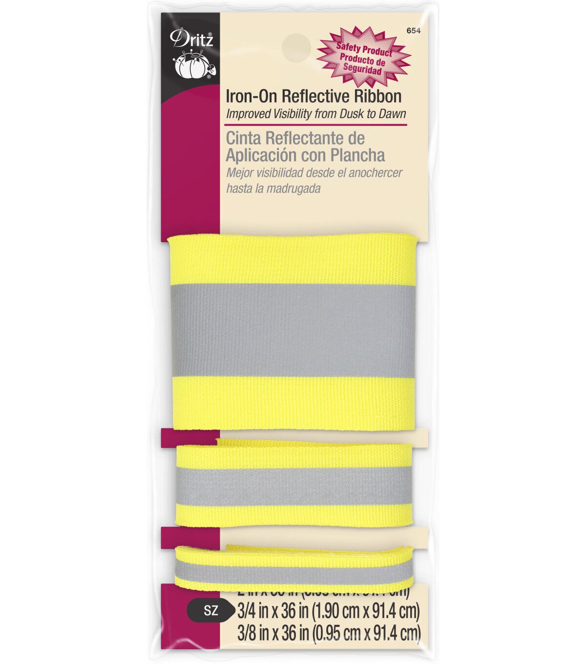 Add a reflective touch to your clothing using the Dritz Assorted Iron-on Reflective Ribbons. This pack includes three iron-on reflective ribbons in varying sizes that will improve the visibility of your fabric from dusk to dawn. It is easy to apply to most items that can sustain the heat of an iron.