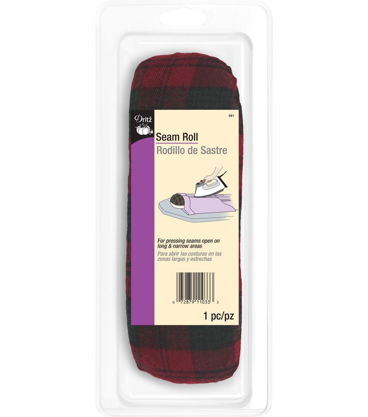 The Dritz Seam Roll - Plaid is a handy pressing tool used for pressing seams open on long and narrow areas, pant legs and other hard-to-reach areas. Use the plaid side, made from 65% cotton and 35% polyester, for woolens, synthetic blends and fabrics requiring low to medium temperatures. You can use the cotton side for cotton, linen and fabrics requiring medium to high temperatures. It prevents impression marks on the right side of the fabric and will give your projects a professional finish.