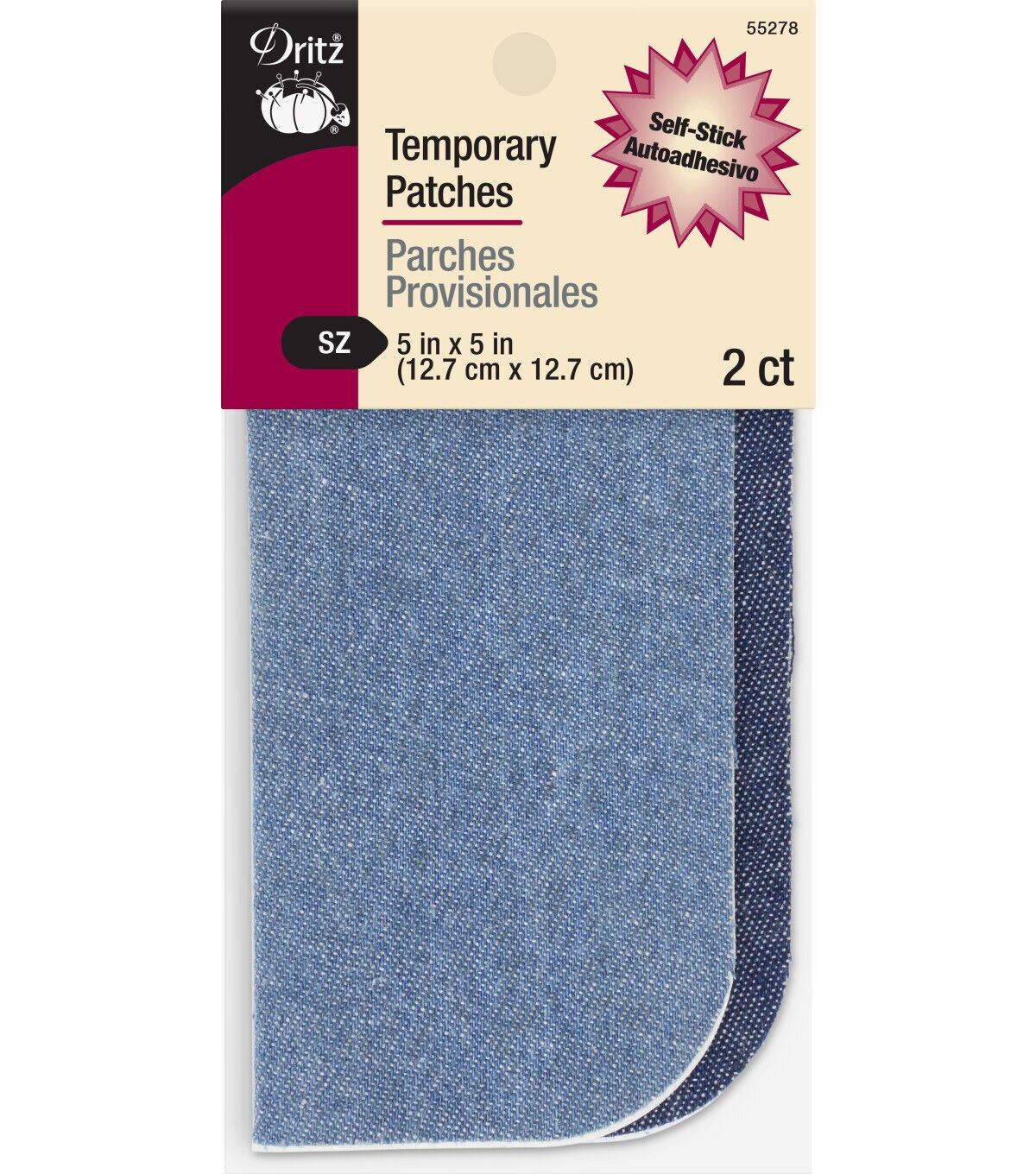 The Dritz Self-stick Adhesive Temporary Patches - Dark & Light Denim will make an attractive addition to your garments. This pack contains two denim patches that sport a stonewash blue denim shade. You can cut it into shapes for temporary designs and apply them to your clothing by just peeling off the backing and pressing.