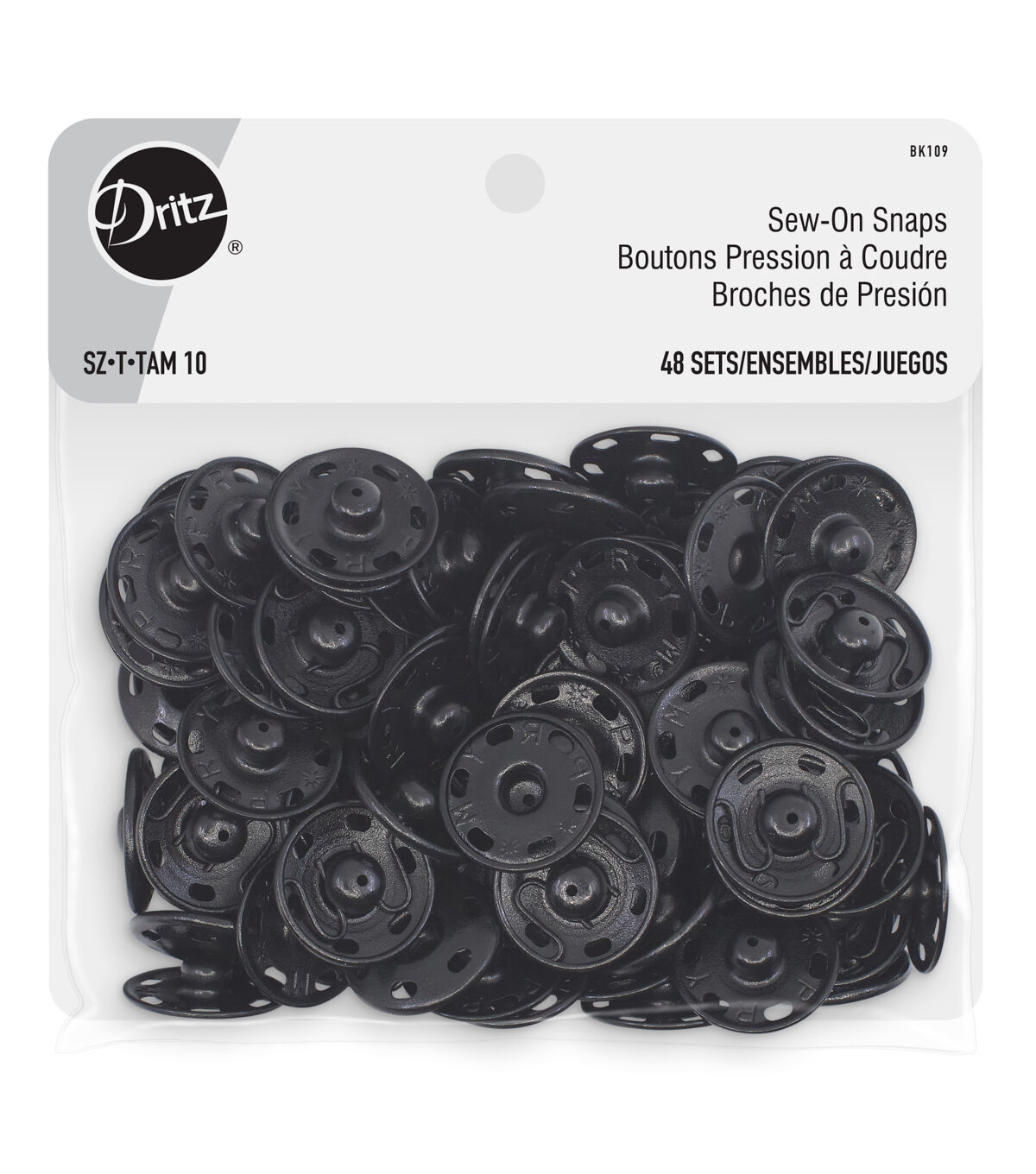 The Dritz Assorted Sew-on Snap Set are flat closures that are used to hold overlapping edges of fabric together and are ideal for use on clothing and accessories. This pack contains 72 sets of brass snaps that are specially crafted for durability and toughness. They include four openings on the edges for stitching. Use them as garment closures on blouses, shirts cardigans, coats and other apparel.