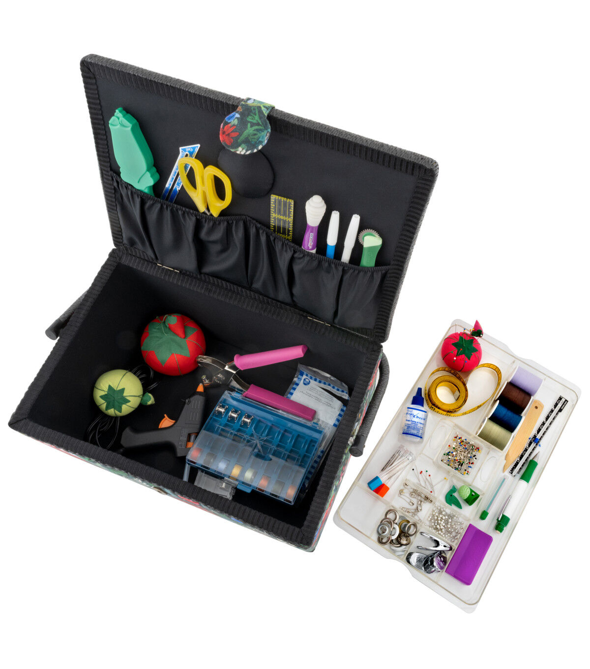- Includes a sturdy removable tray for organizing small tools and sewing notions