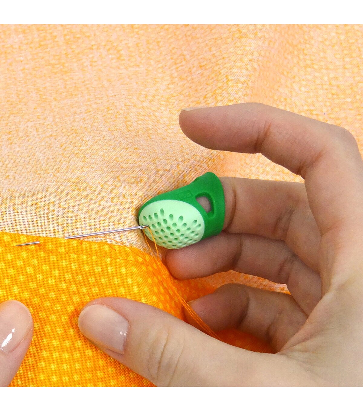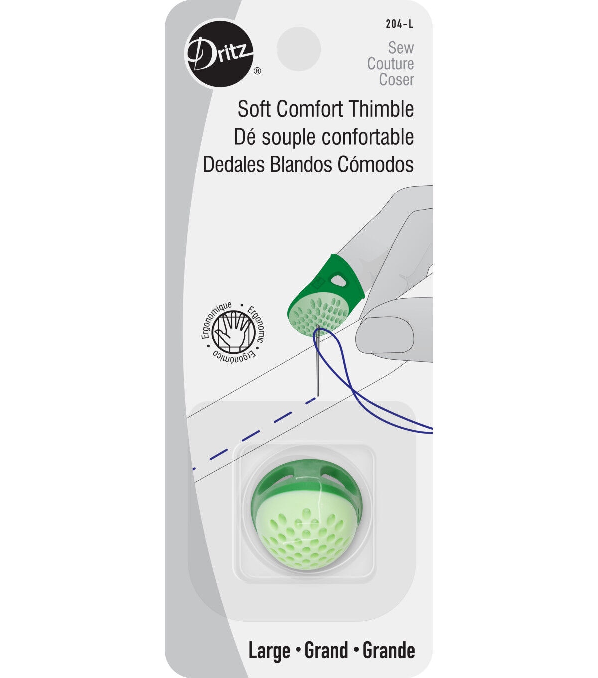 Add the Dritz Large Soft Comfort Thimble to your sewing supplies kit for a stress-free sewing experience. This soft-sided thimble is comfortable and comes with openings on the top for breathability. The hard, textured tip protects the finger and prevents the needle from slipping. It is ideal for sewing, quilting and crafting.