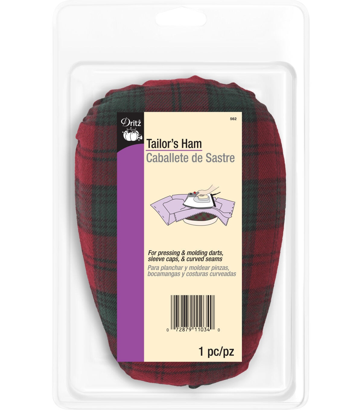 The Dritz Tailor's Ham - Plaid is a handy pressing tool used for pressing and molding darts, sleeve caps and curved seams. Use the plaid side for woolens, synthetic blends and fabrics requiring low to medium temperatures. You can use cotton side for cotton, linen and fabrics requiring medium to high temperatures. Press with the grain line of the fabric, using a gentle up-and-down motion.