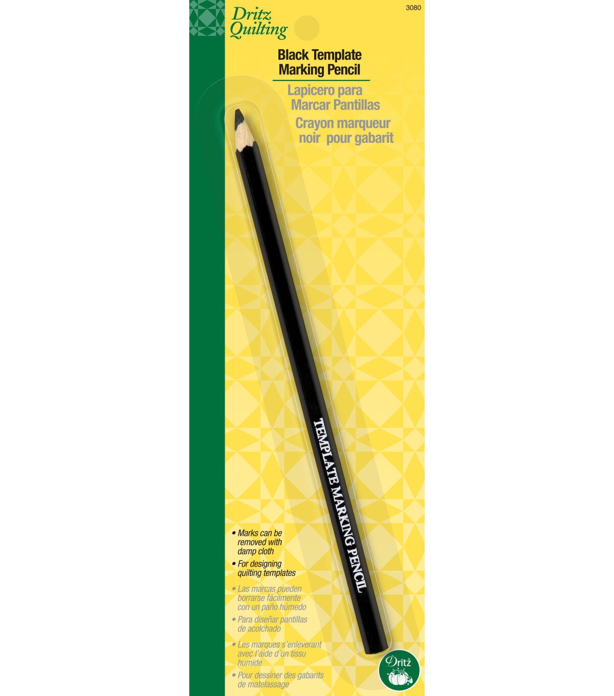 Showcase your creativity by using the Dritz Template Marking Pencil - Black to draw on plastic. This black pencil is a useful tool, especially when you sketch lines and patterns on plastic surfaces to make your own unique templates. The lead markings made by it are erasable and can be wiped off with a damp cloth.